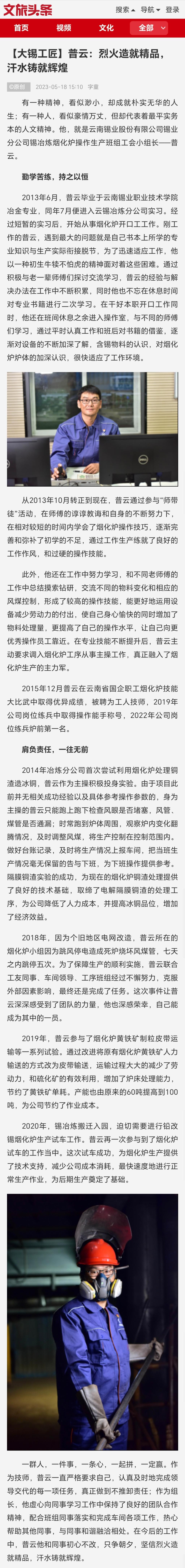 文旅头条:【大锡工匠】普云:烈火造就精品,汗水铸就辉煌