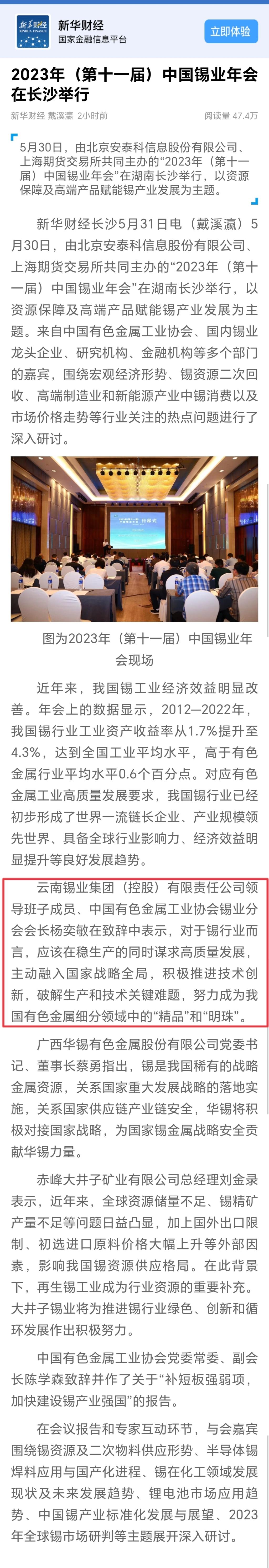 新华财经:2023年(第十一届)中国锡业年会在长沙举行