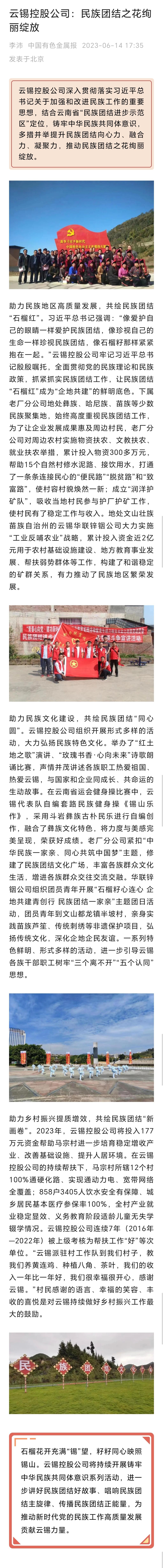 学习强国、云报客户端、云南国资、中新网云南、七彩云端、云南政协报、中国有色金属报:民族团结之花绚丽绽放