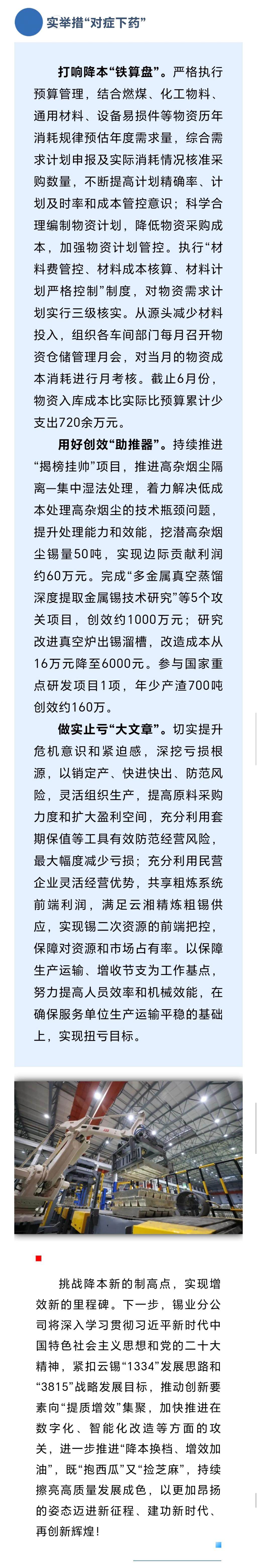 云南国资:云锡集团开源节流始于心 提质增效践于行