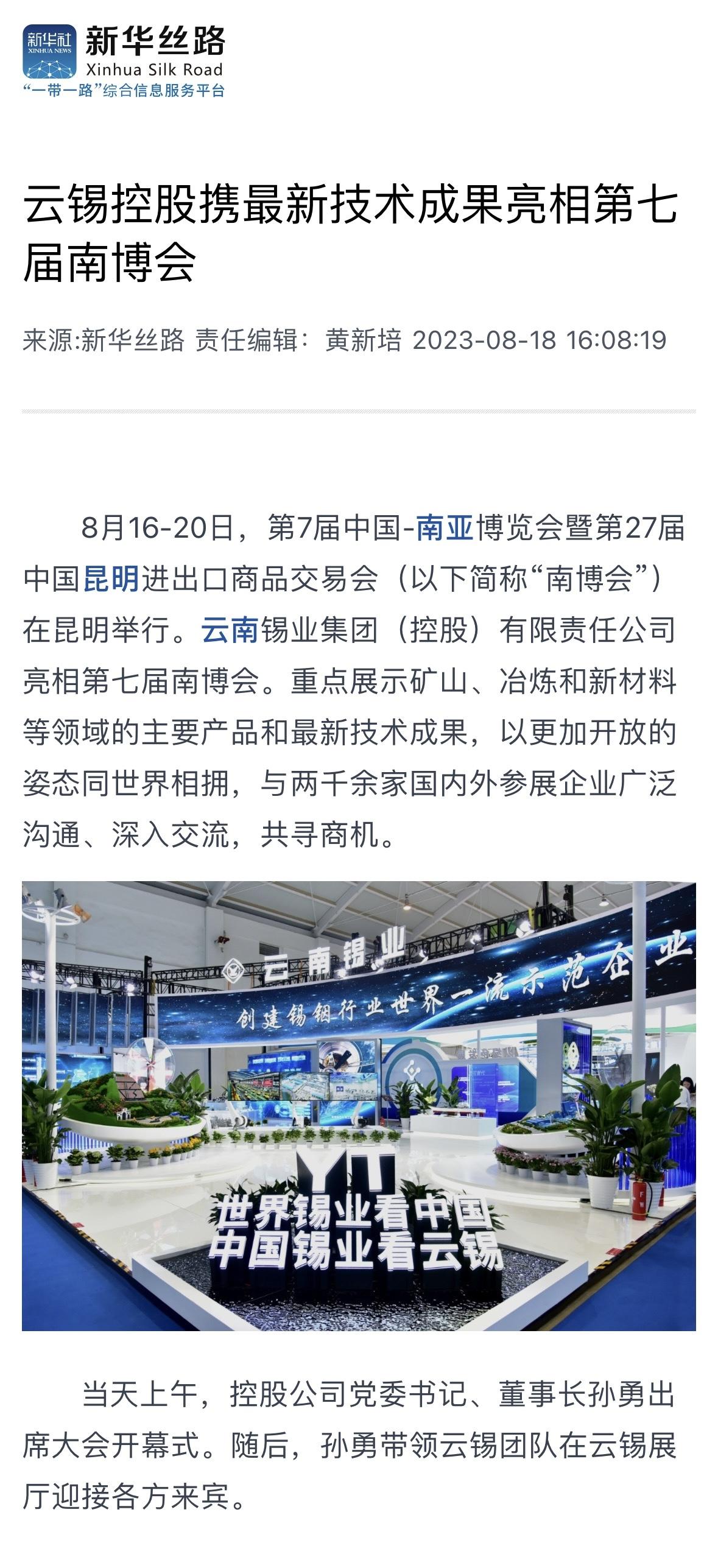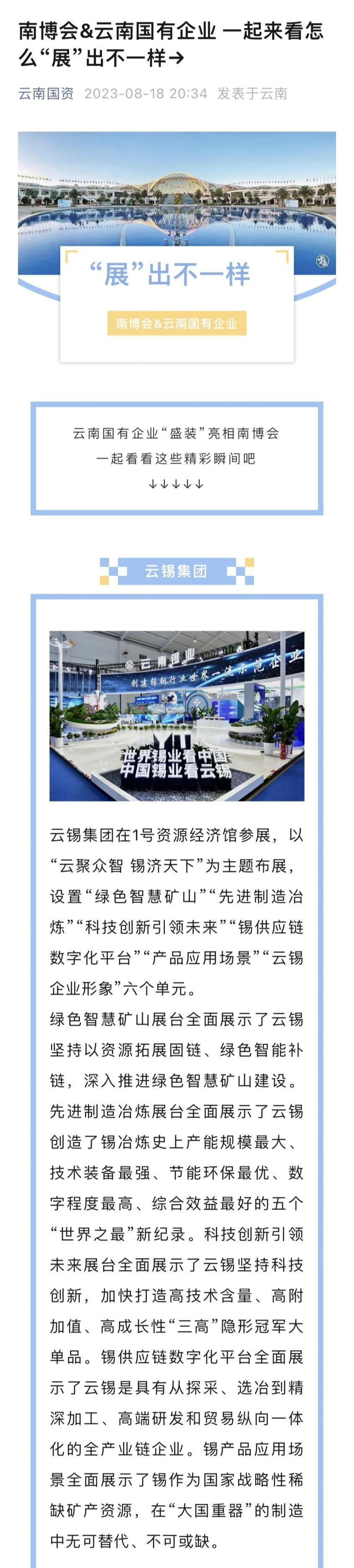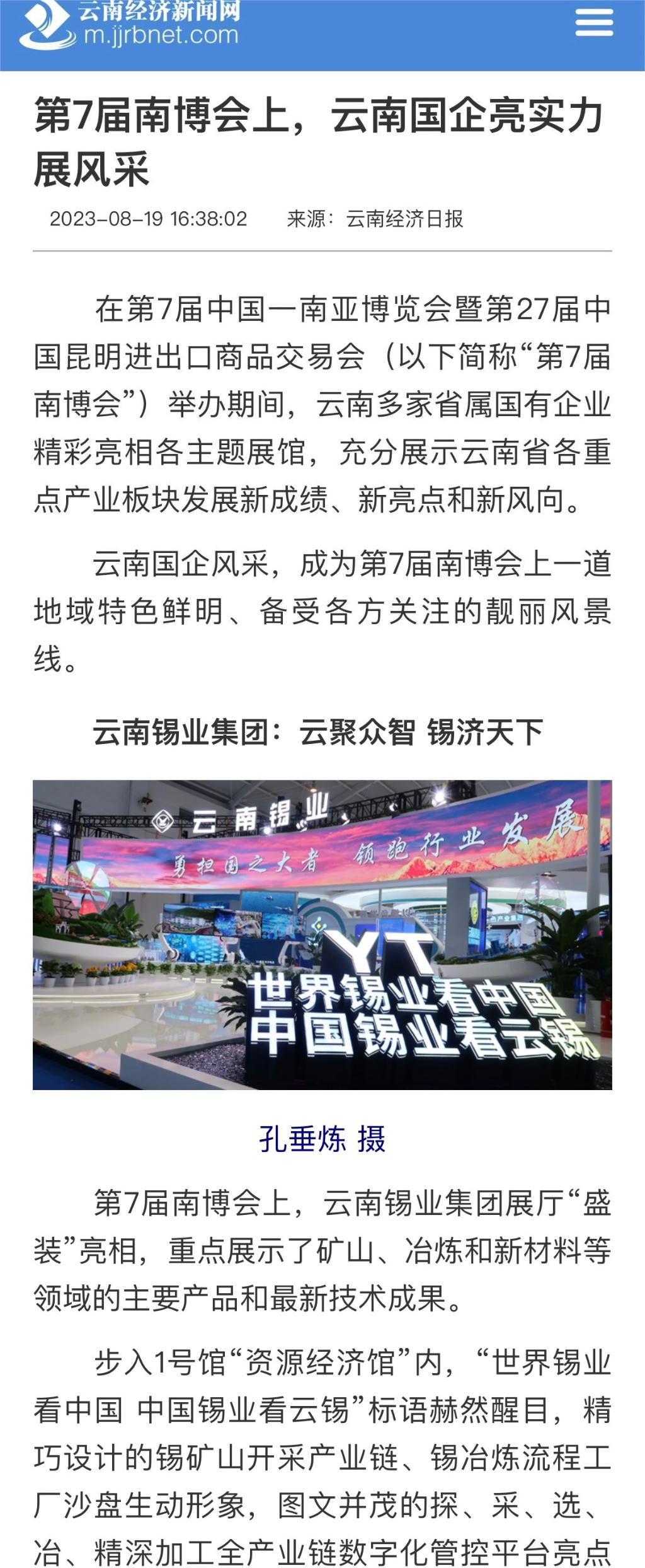 新华财经、新华丝路、中国网、云南国资、云南网:云锡控股携最新技术成果亮相第七届南博会