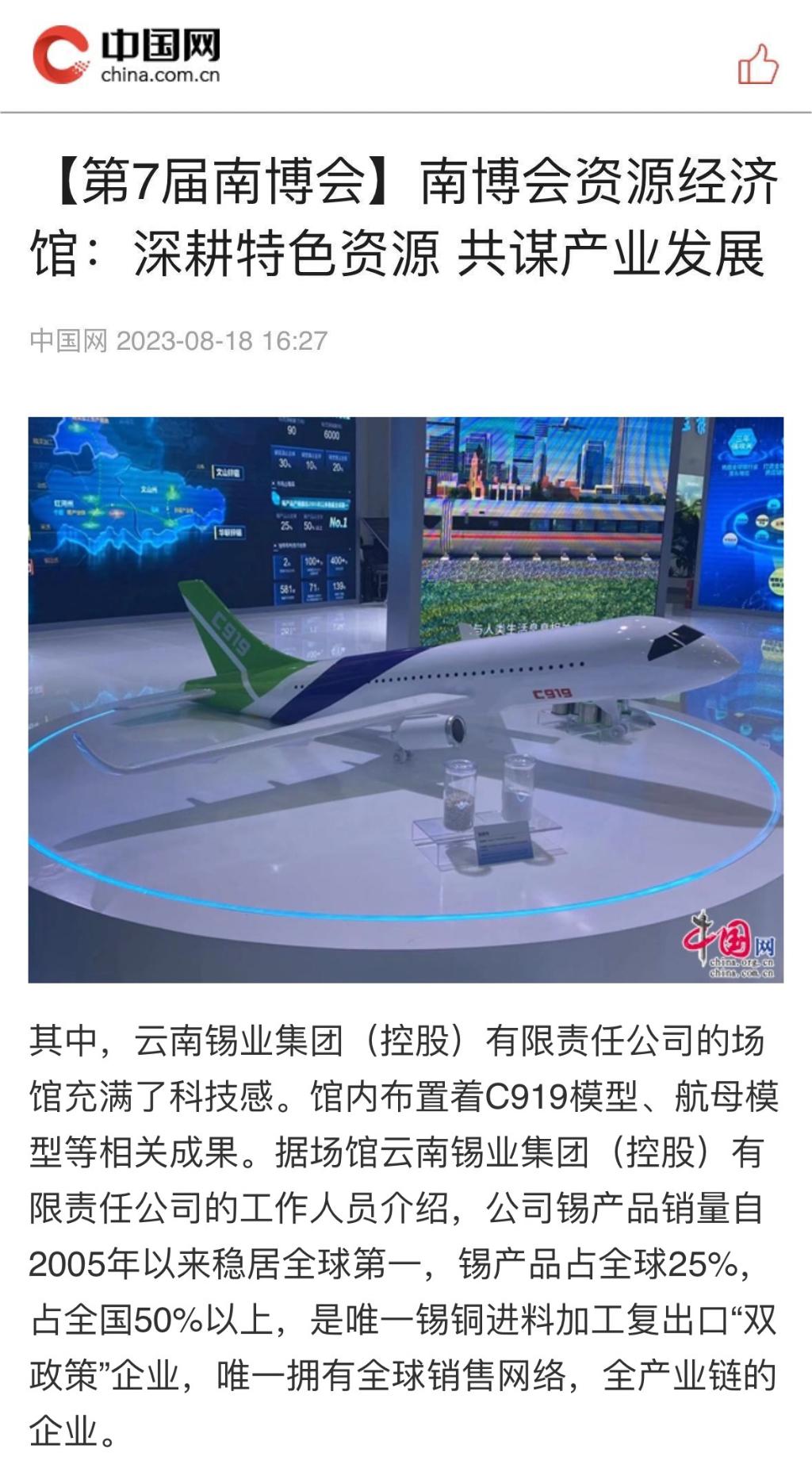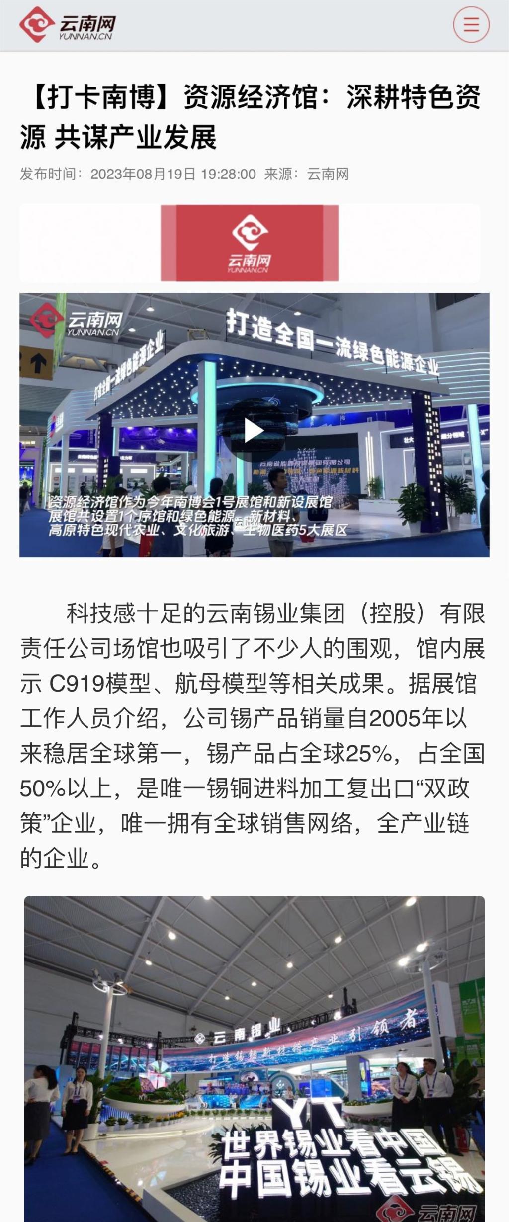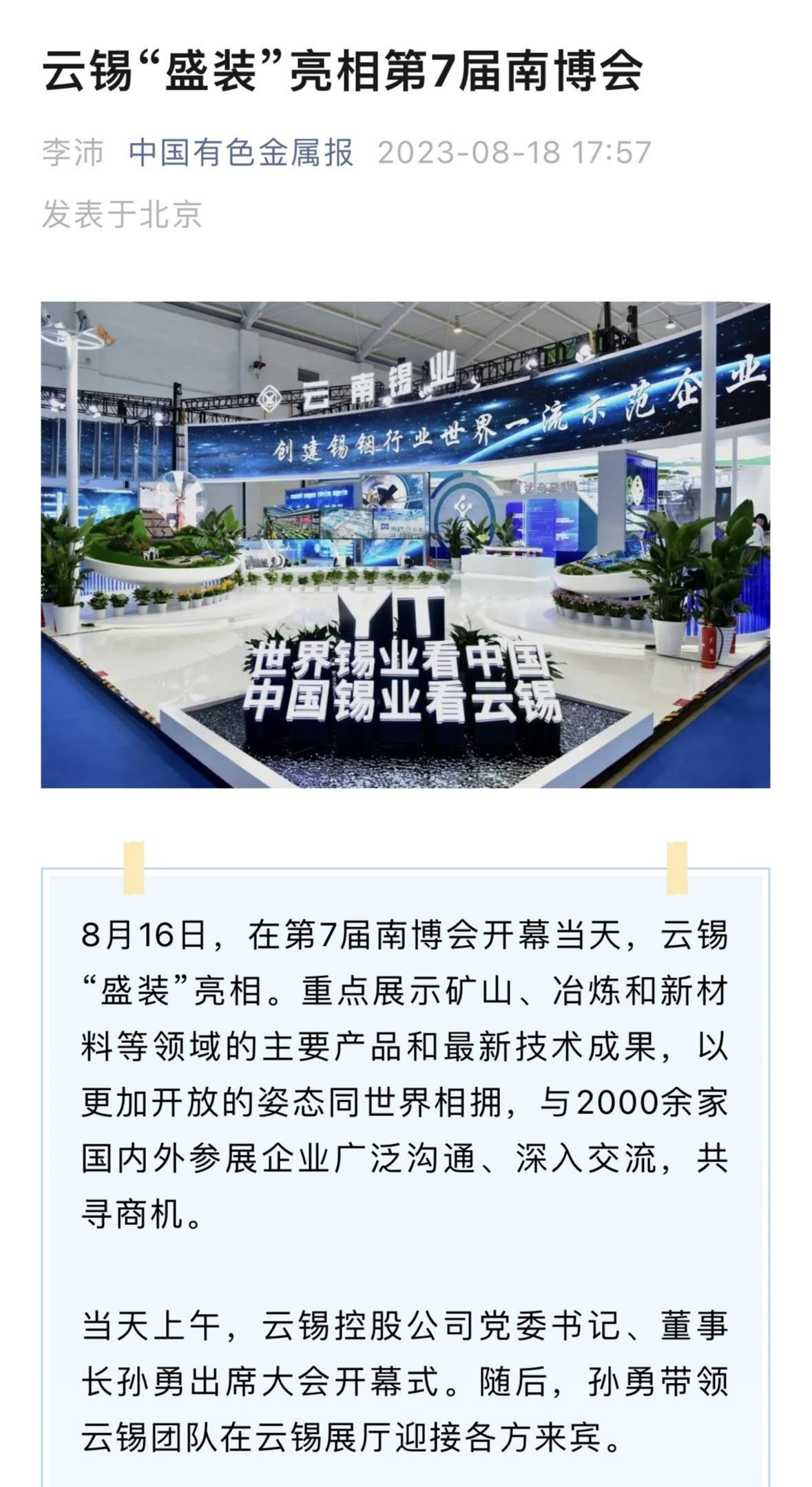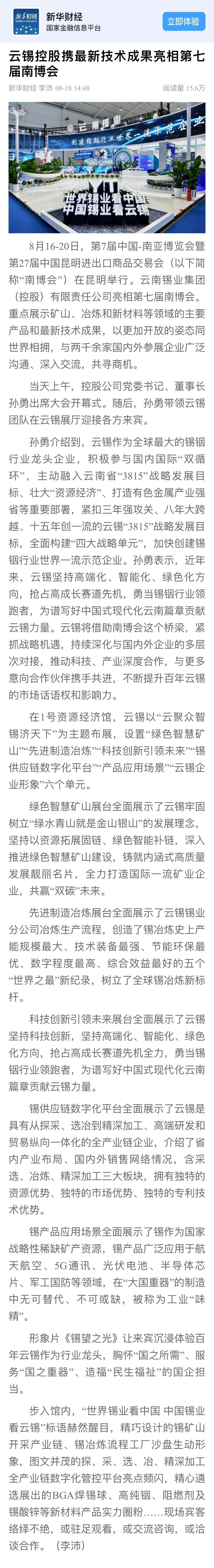 新华财经、新华丝路、中国网、云南国资、云南网:云锡控股携最新技术成果亮相第七届南博会