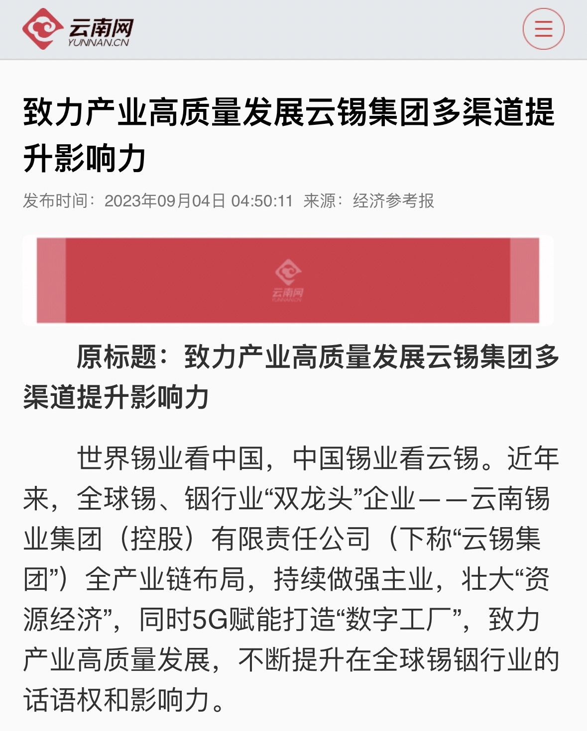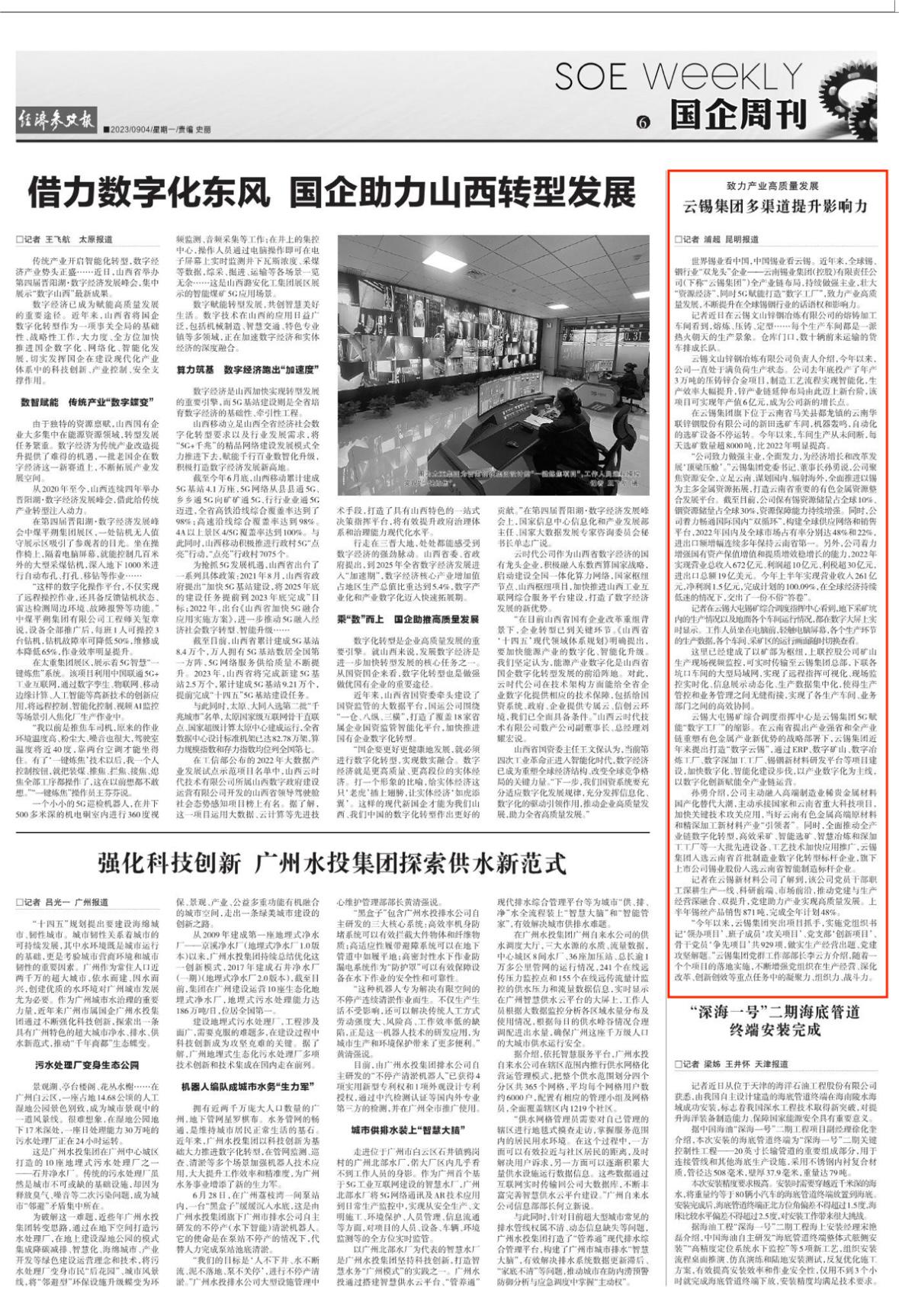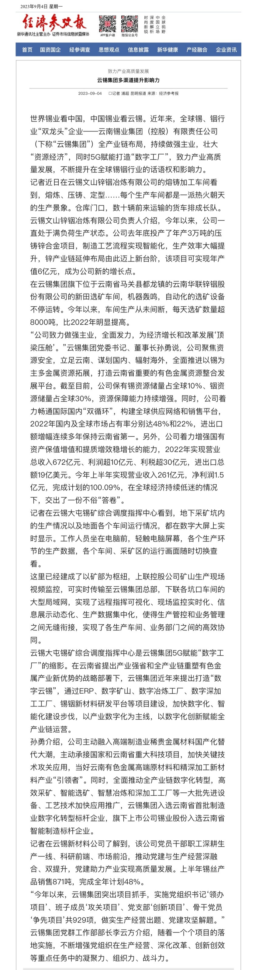 经济参考报:致力产业高质量发展 云锡集团多渠道提升影响力