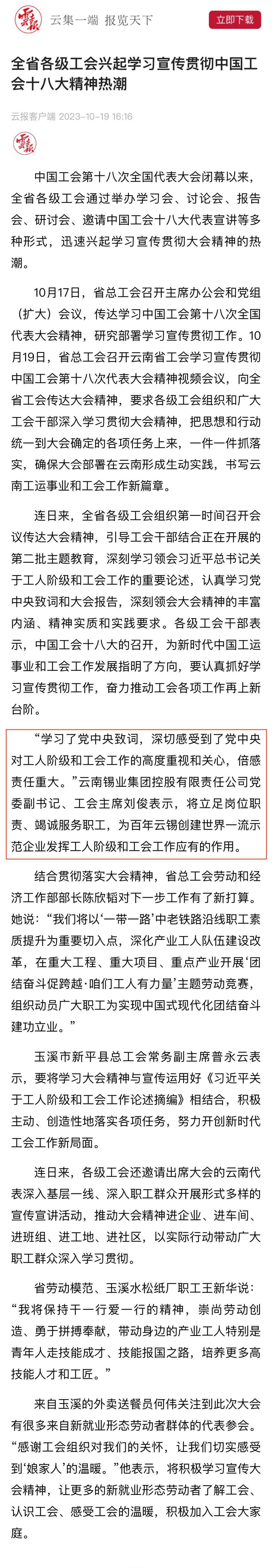 云报客户端:全省各级工会兴起学习宣传贯彻中国工会十八大精神热潮