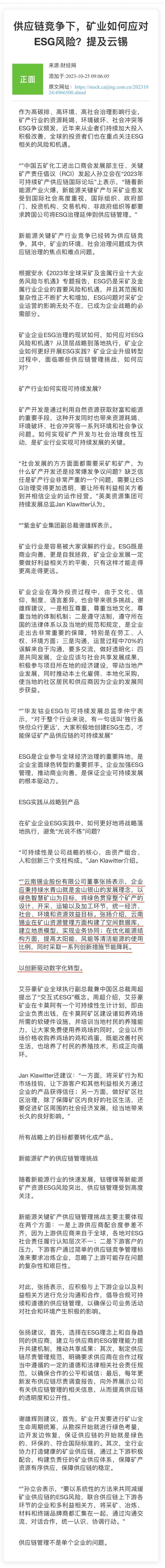财经网:供应链竞争下,矿业如何应对ESG风险?
