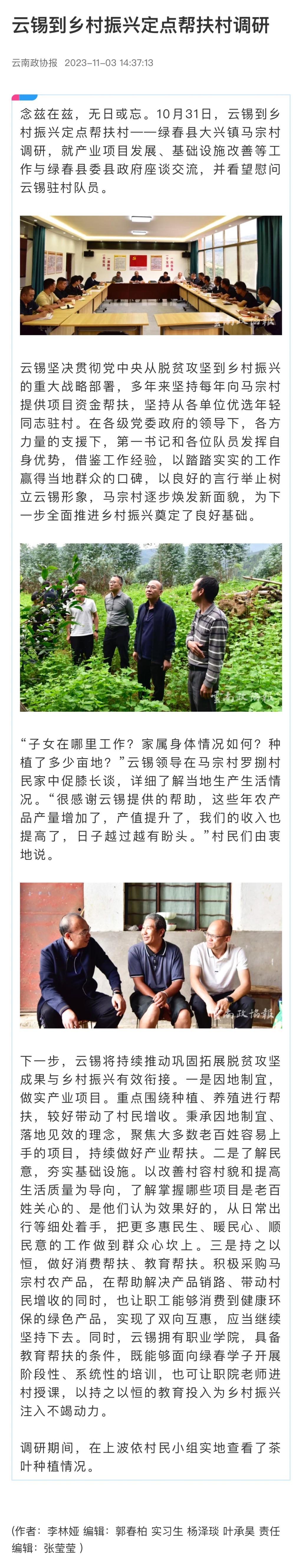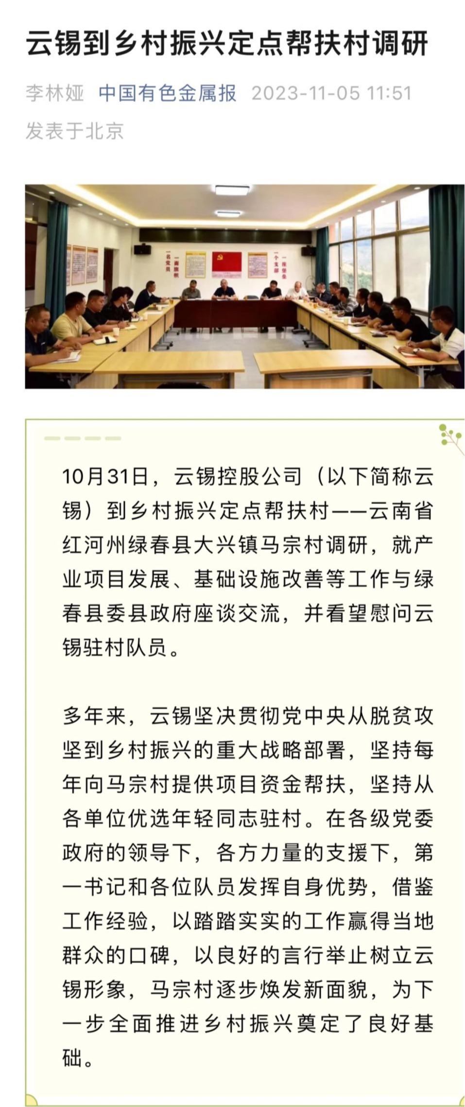 云南政协报、中国有色金属报:云锡到乡村振兴定点帮扶村调研