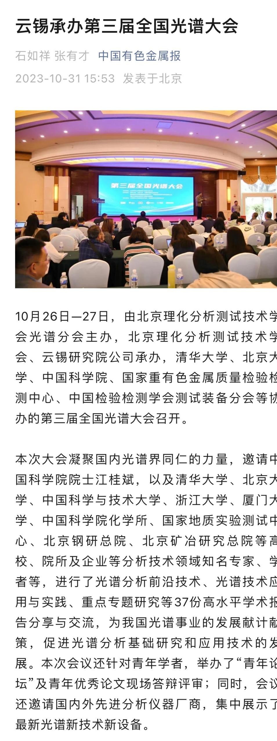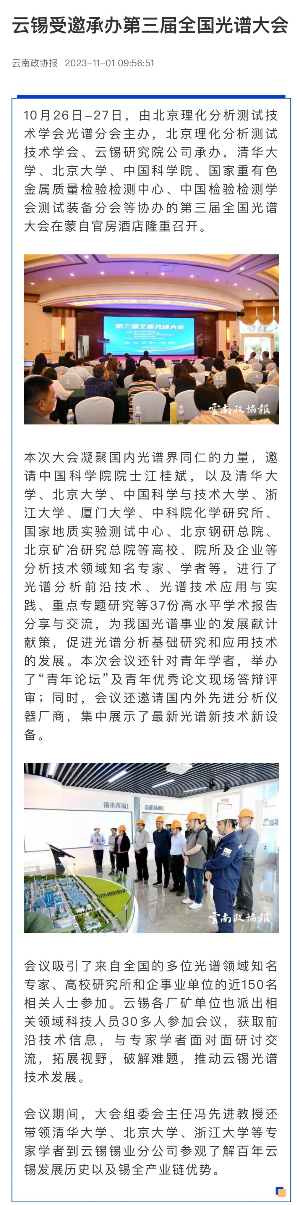 云南政协报、中国有色金属报:云锡承办第三届全国光谱大会