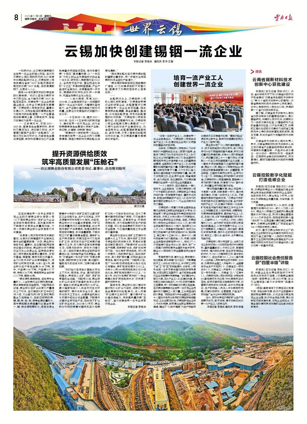 面向未来,锡业股份将以建设中国式现代化矿山为目标,深耕云锡有色金属原材料战略单元,深入开展“矿山提升三年行动”,着力提升矿山价值创造能力,筑牢高质量发展“压舱石”,奋力创建世界一流专业领军示范企业。(本报记者 李继洪)