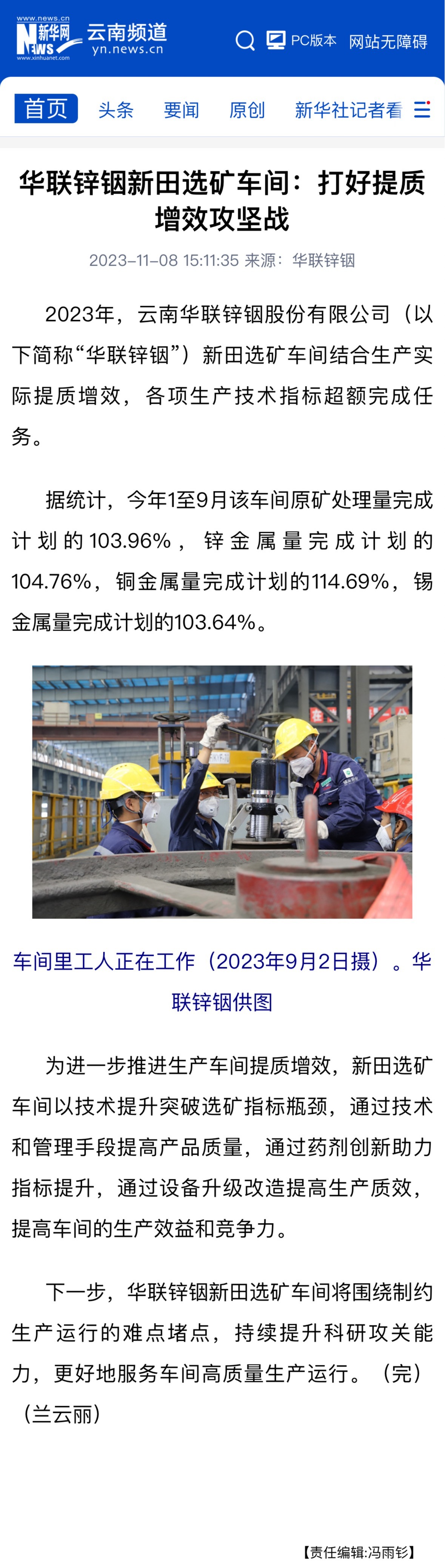 新华网:华联锌铟新田选矿车间打好提质增效攻坚战