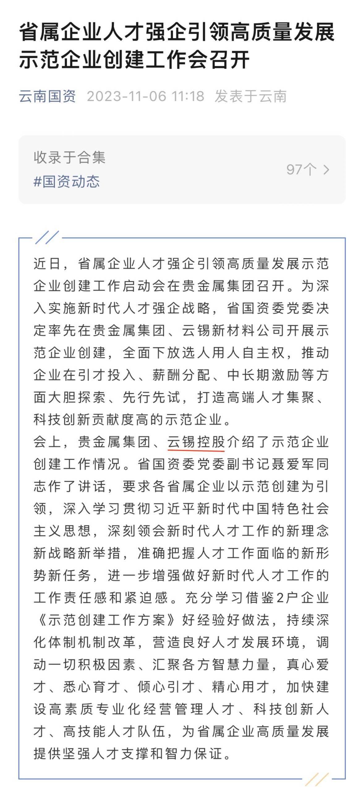 云南国资:省属企业人才强企引领高质量发展示范企业创建工作会召开