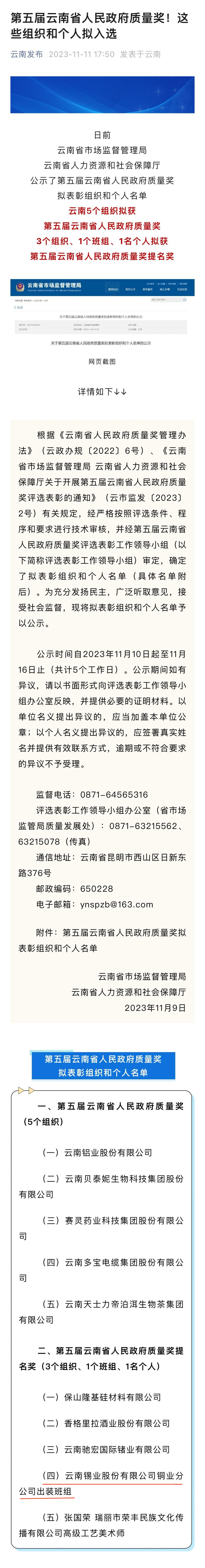 云南发布:第五届云南省人民政府质量奖!这些组织和个人拟入选