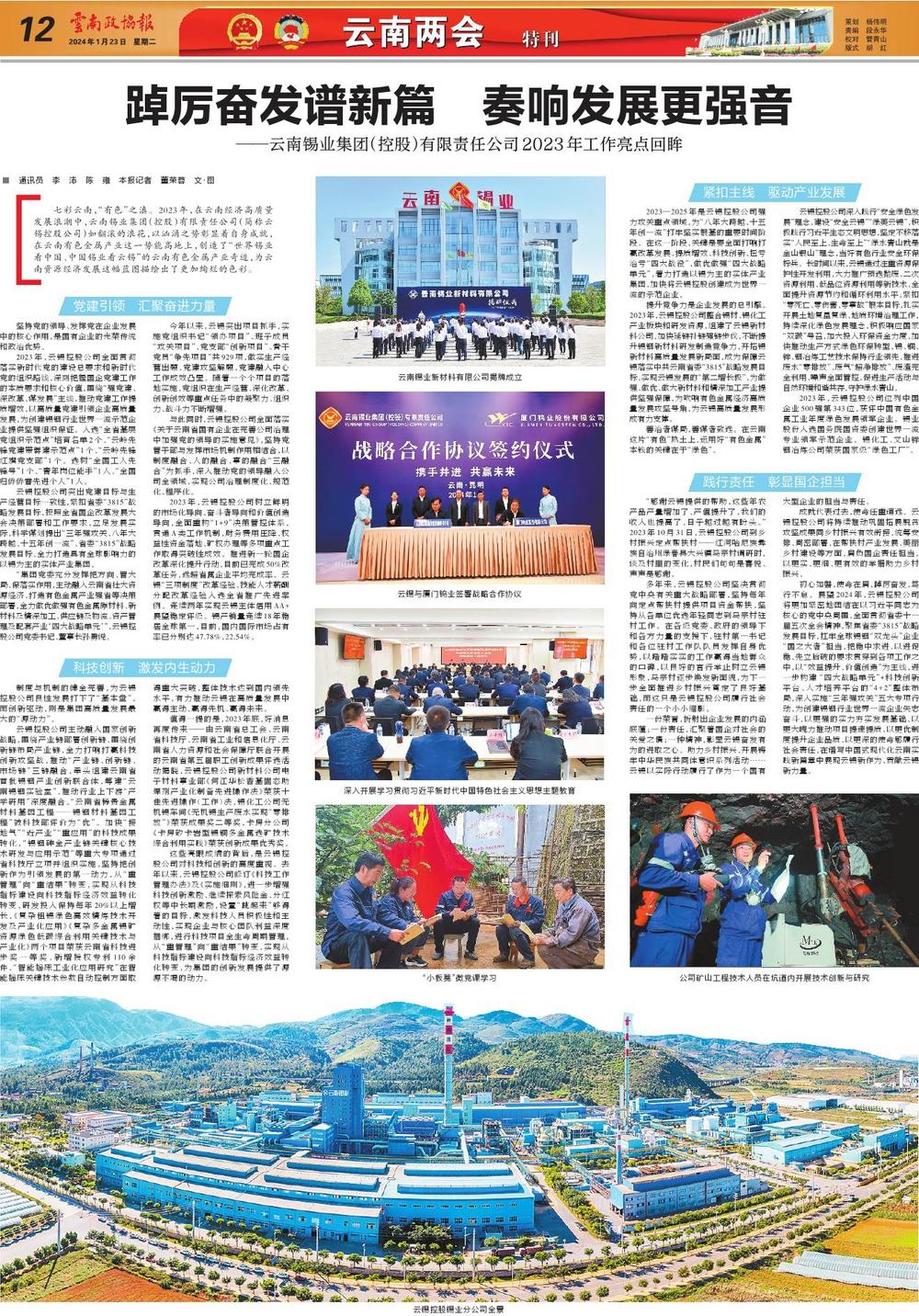 七彩云南,“有色”之滇。2023年,在云南经济高质量发展浪潮中,云南锡业集团(控股)有限责任公司(简称云锡控股公司)如翻滚的浪花,以汹涌之势彰显着自身成就,在云南有色金属产业这一势能高地上,创造了“世界锡业看中国、中国锡业看云锡”的云南有色金属产业奇迹,为云南资源经济发展这幅蓝图描绘出了更加绚烂的色彩。