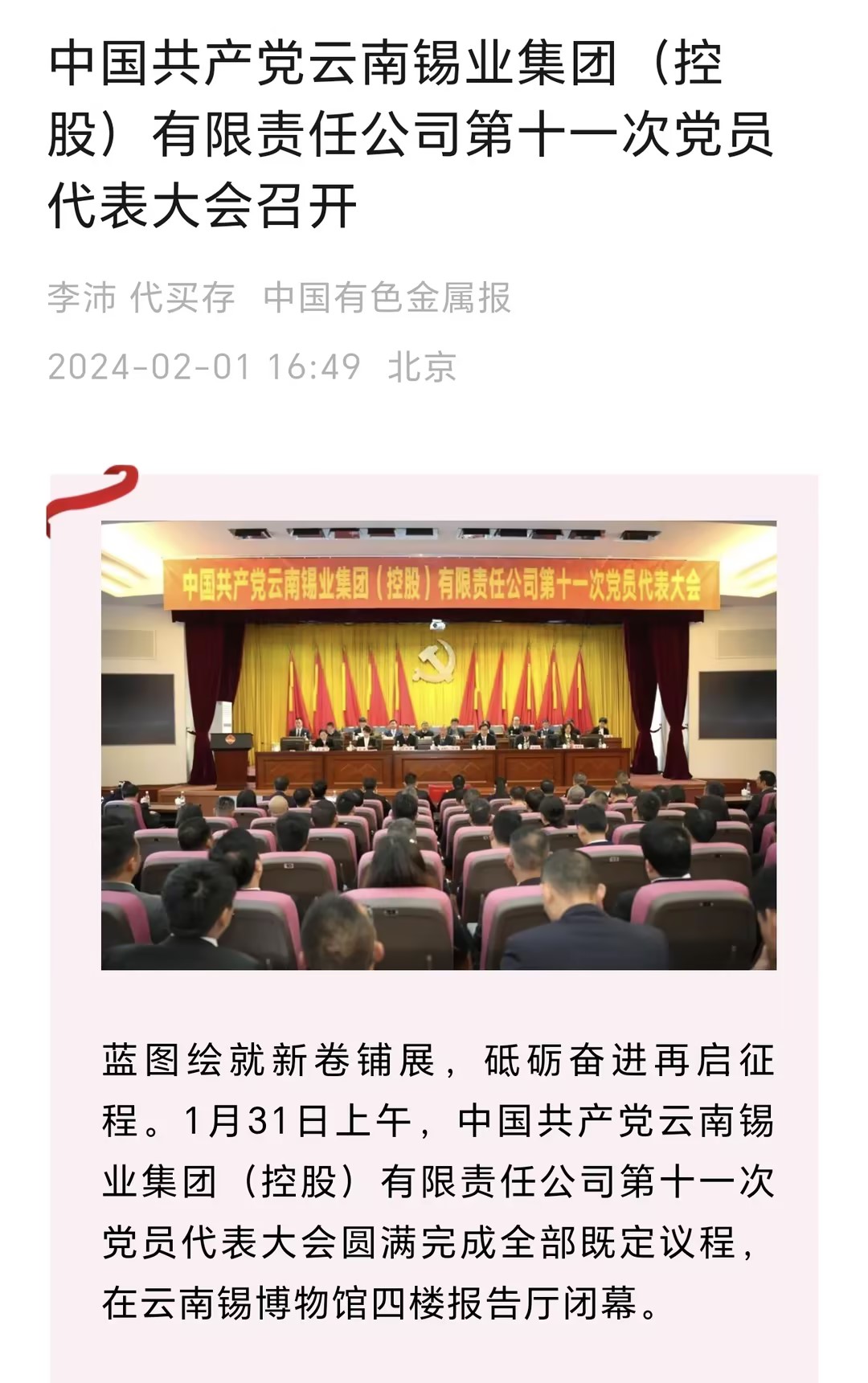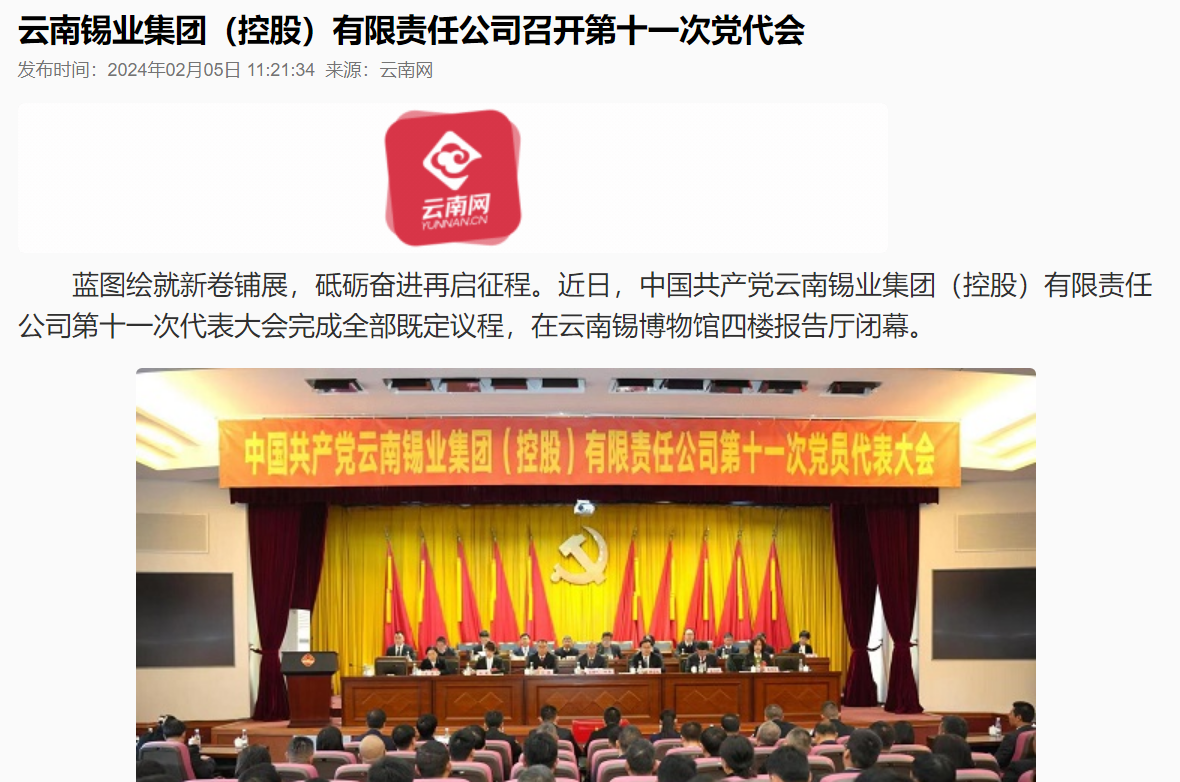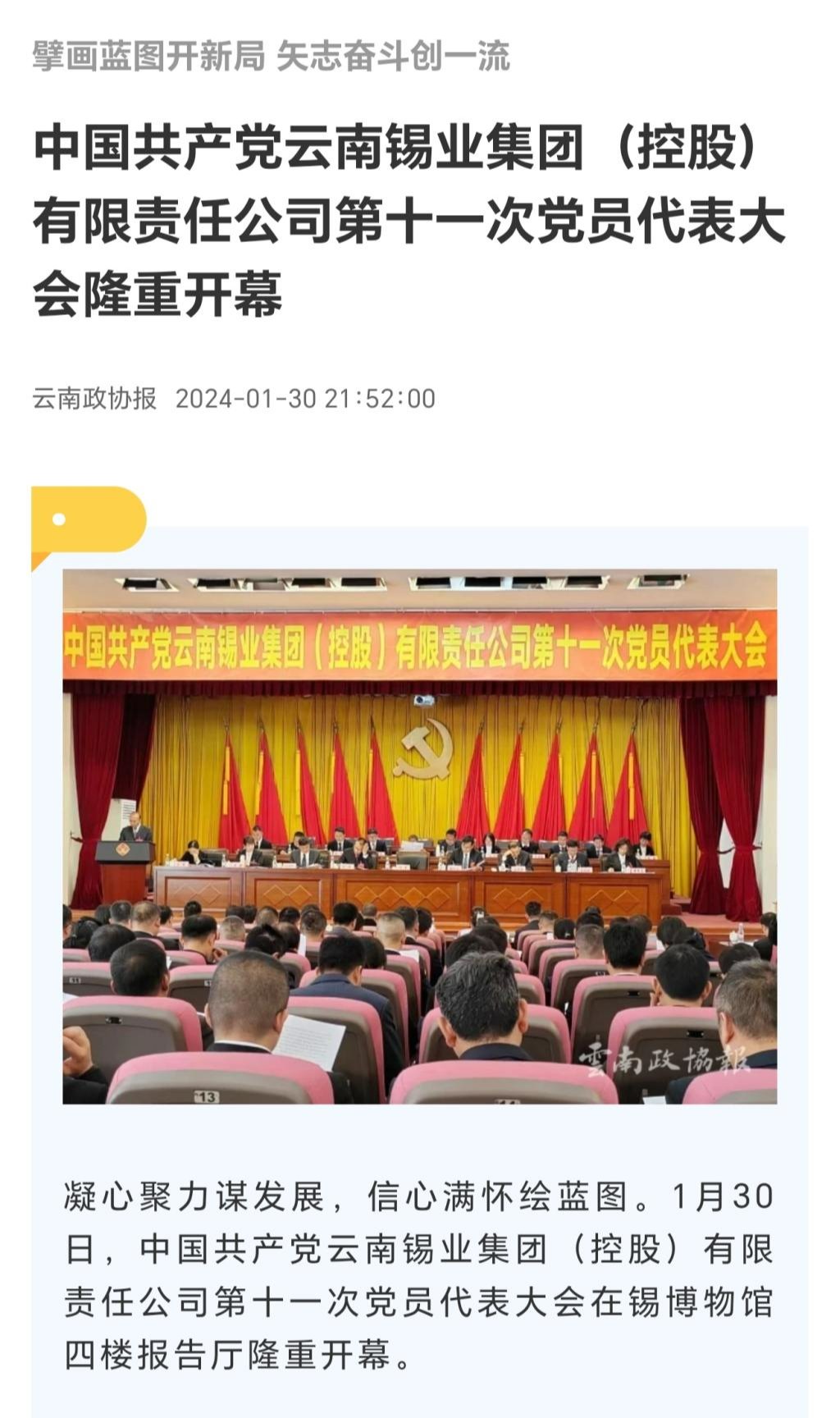 云南网、云南政协报、中国有色金属报:云锡控股公司召开第十一次党员代表大会