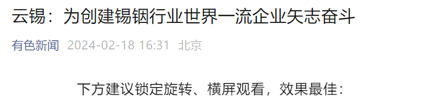 有色新闻:云锡为创建锡铟行业世界一流企业矢志奋斗