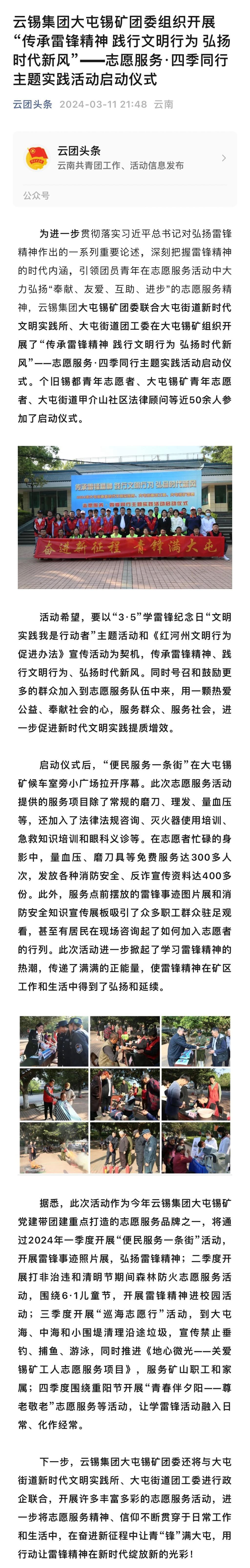 云团头条:党建带团建·大屯锡矿组织开展政企联合“传承雷锋精神 践行文明行为 弘扬时代新风”——志愿服务主题实践活动启动仪式