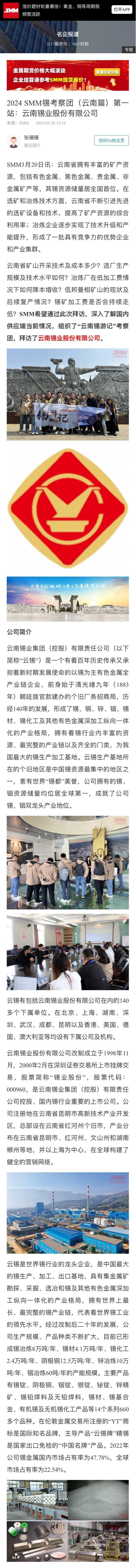 上海有色网:2024 SMM锡考察团(云南篇)第一站——云南锡业股份有限公司