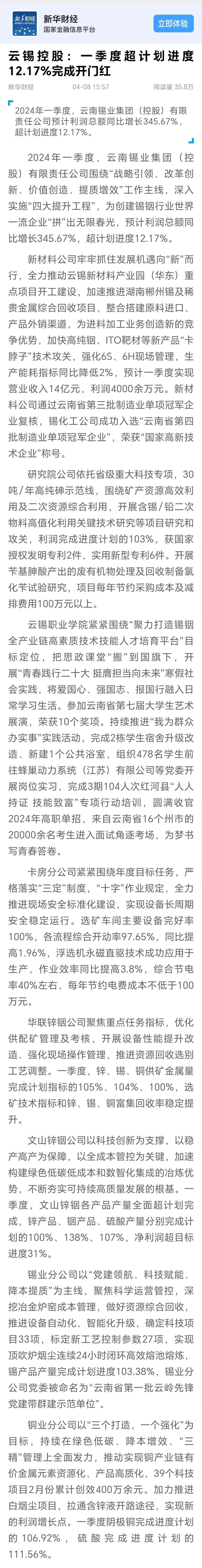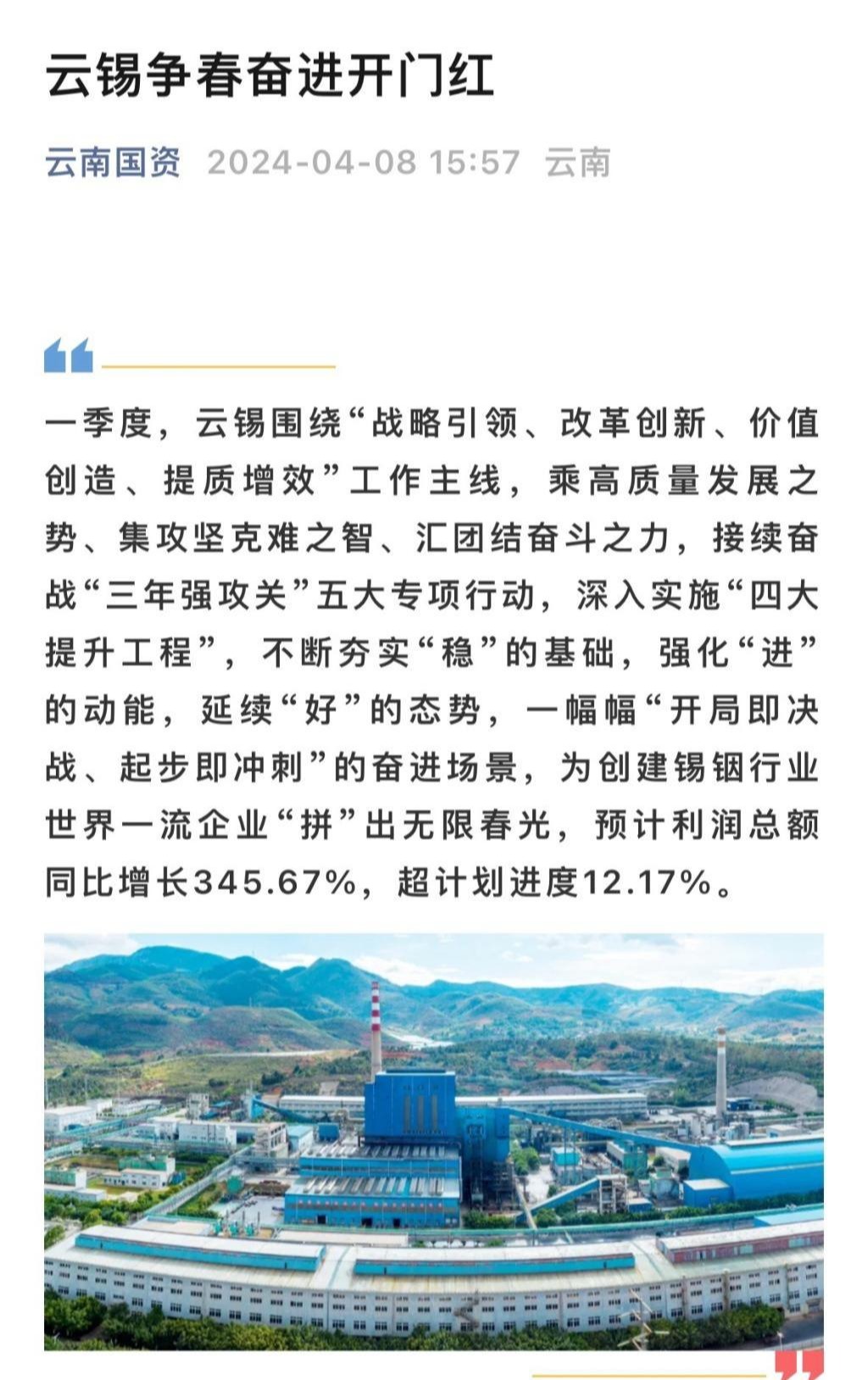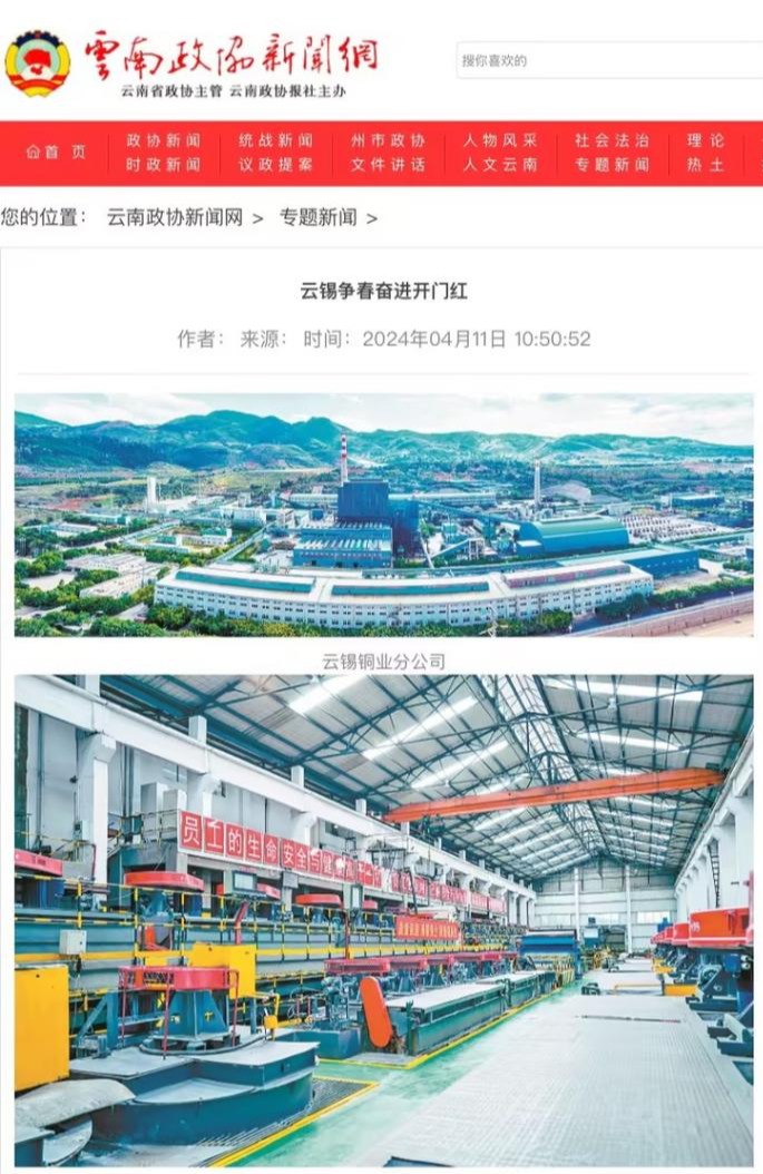 新华财经、云南国资、中国有色金属报、云南政协新闻网:云锡争春奋进开门红