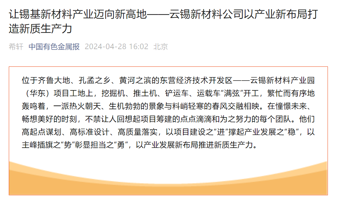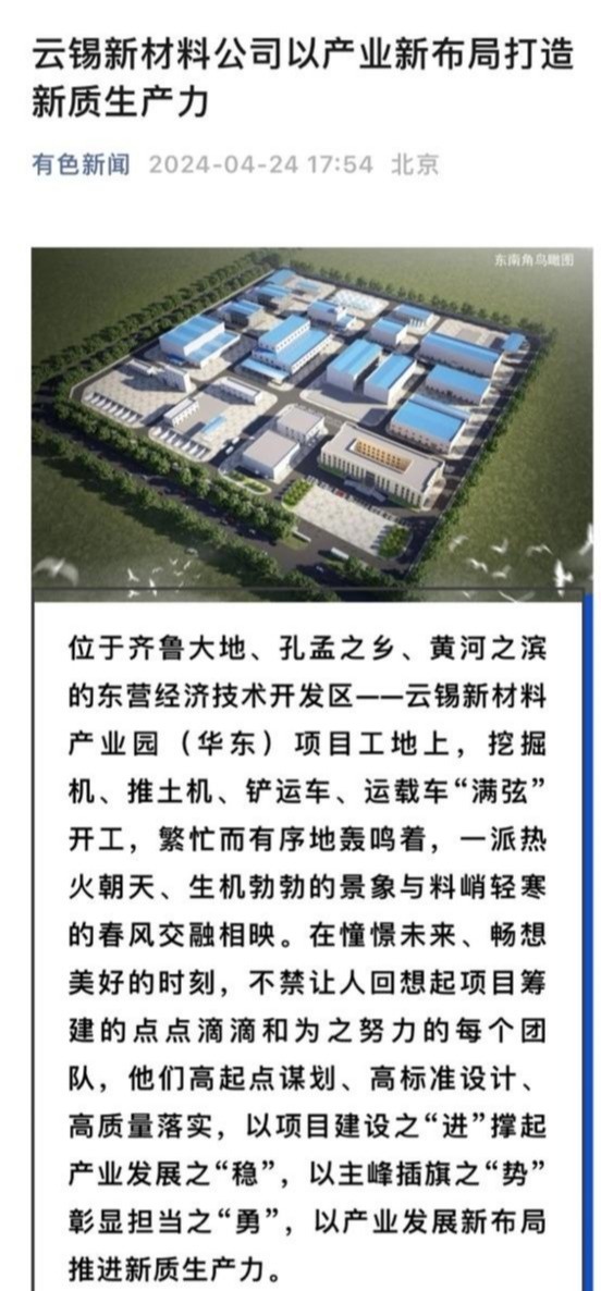 云南政协报、中国有色金属报、有色新闻:云锡新材料公司以产业新布局打造新质生产力