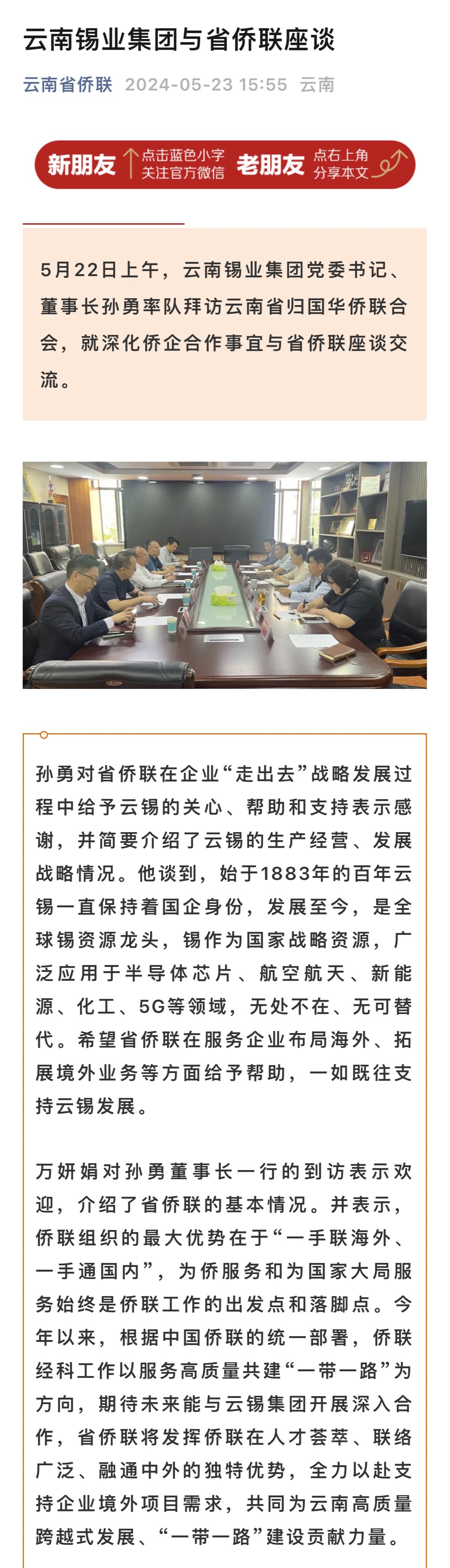 云南省侨联:云锡与省侨联座谈交流