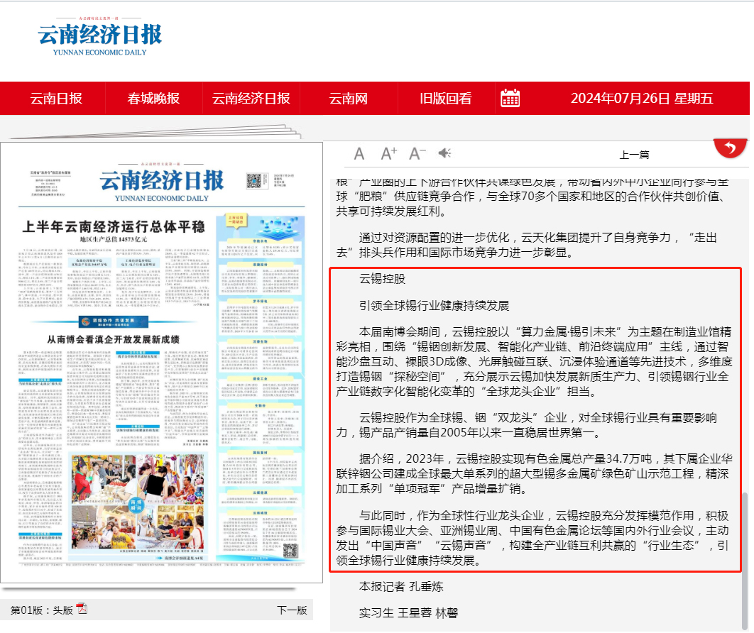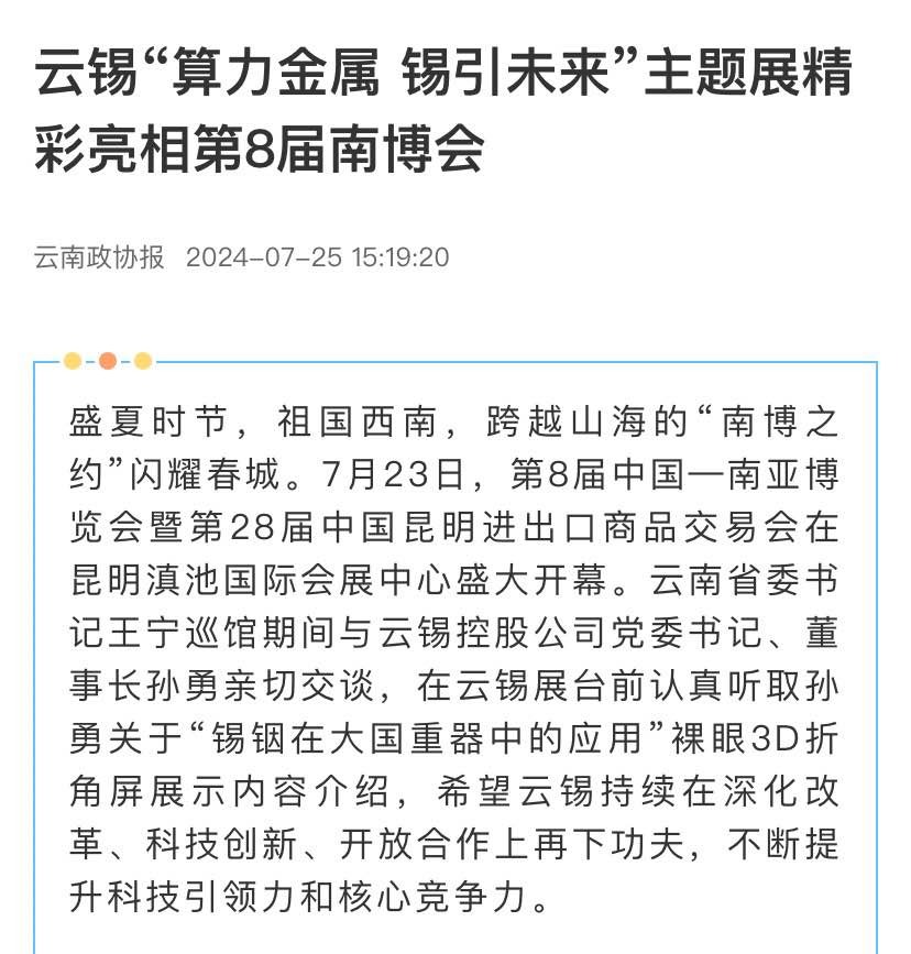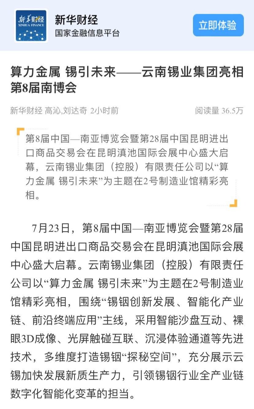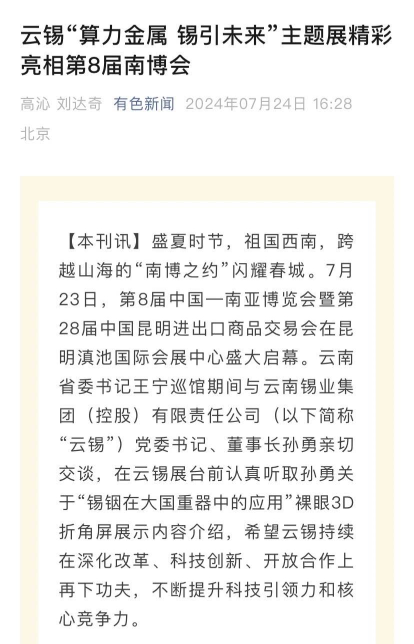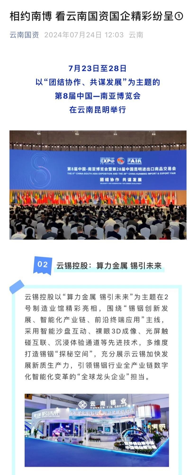 来源:央广网、新华财经、云南发布、云南日报、云南网、云南经济日报、云南国资、云南政协报、中国有色金属报、有色新闻