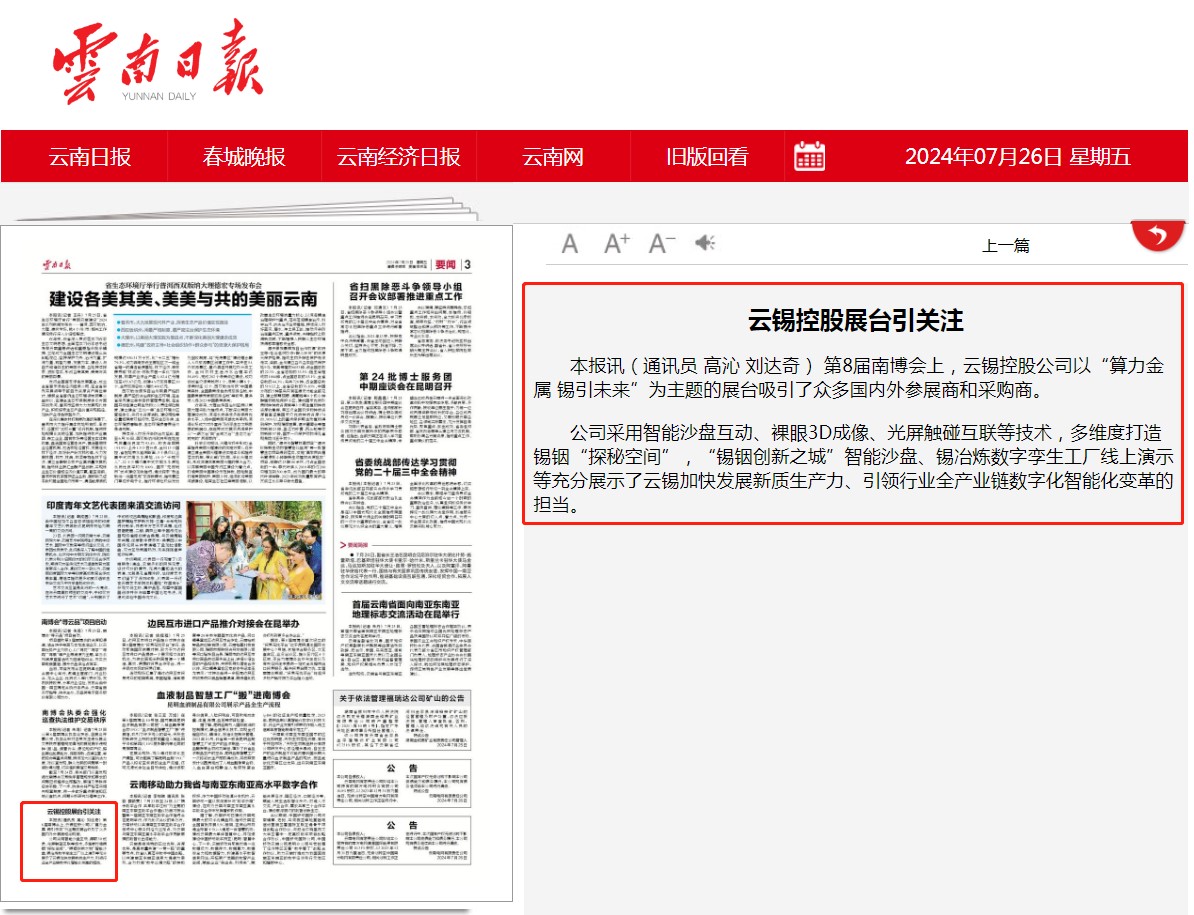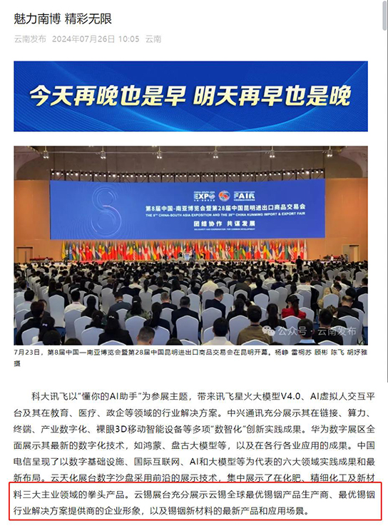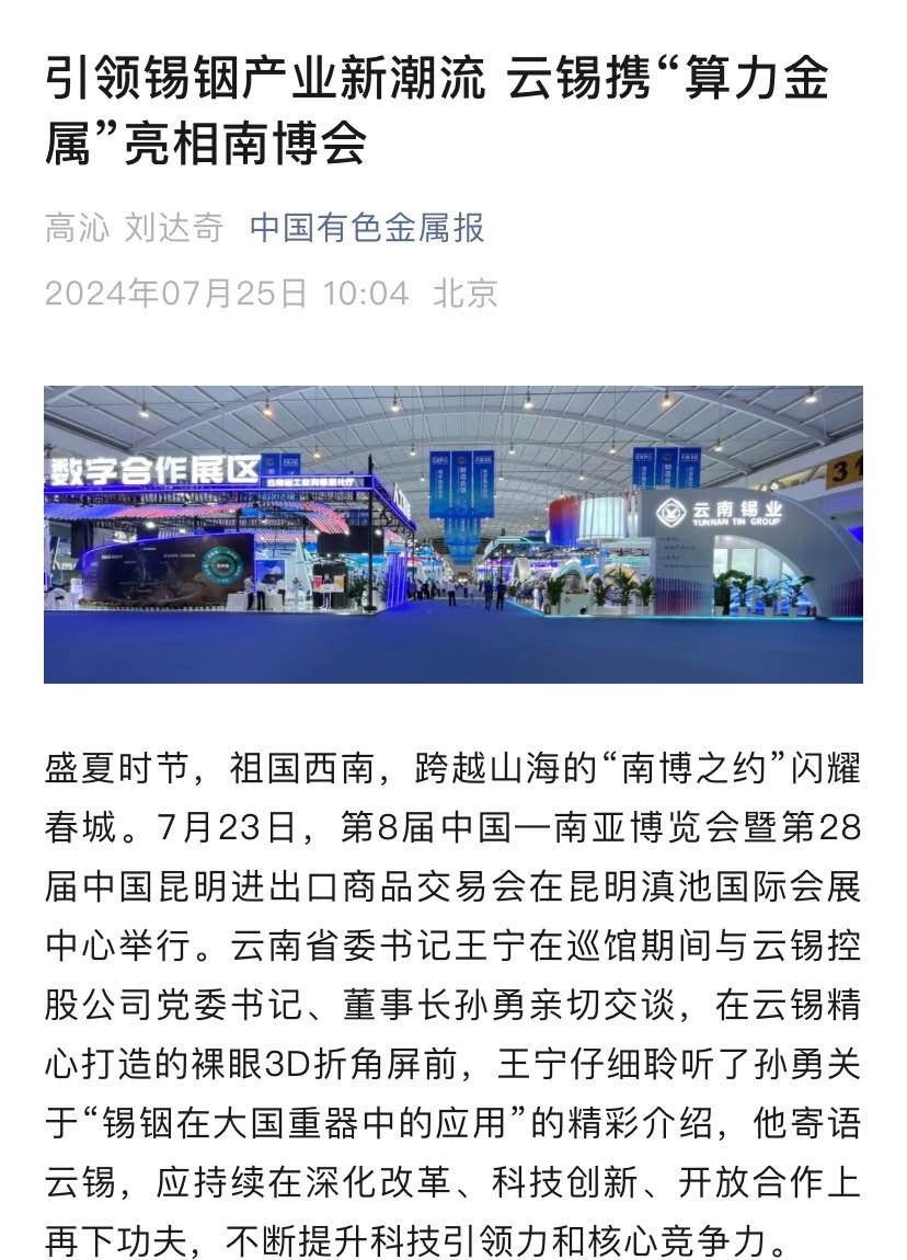 央广网、云南日报等多家主流媒体关注云锡精彩亮相第8届南博会