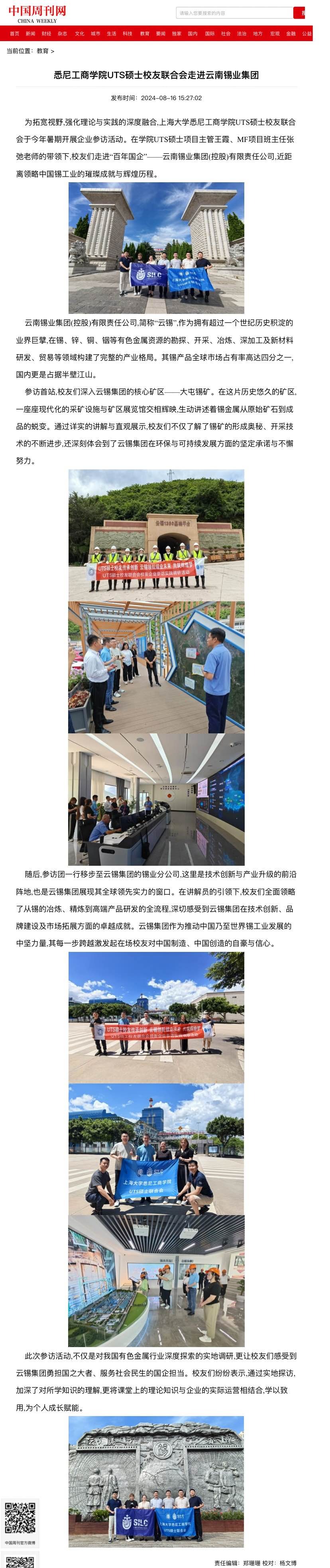 中国周刊:悉尼工商学院UTS硕士校友联合会走进云南锡业集团
