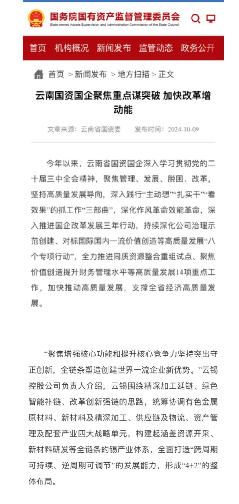 国务院国资委:云南国资国企聚焦重点谋突破 加快改革增动能