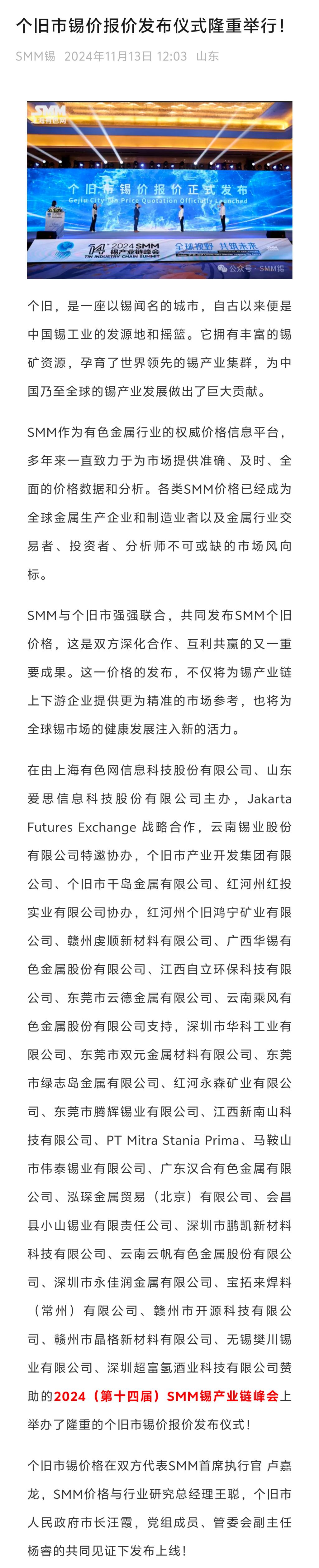 上海有色网:个旧市锡价报价发布仪式隆重举行!