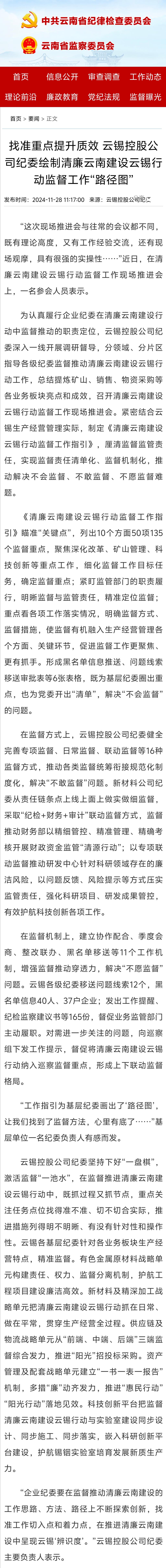 省纪委监委:找准重点提升质效 云锡控股公司纪委绘制清廉云南建设云锡行动监督工作“路径图”
