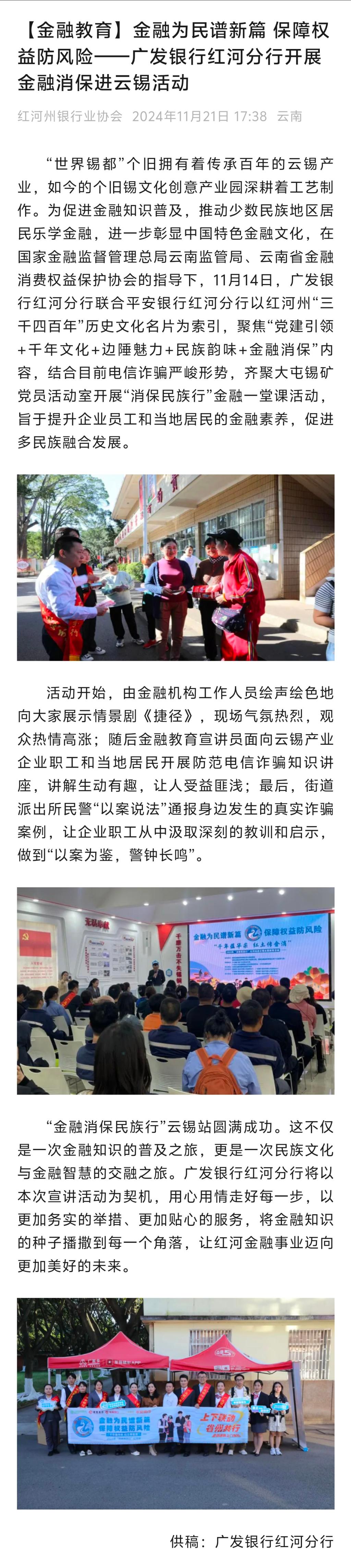 红河州银行业协会:广发银行红河分行开展金融消保进云锡活动