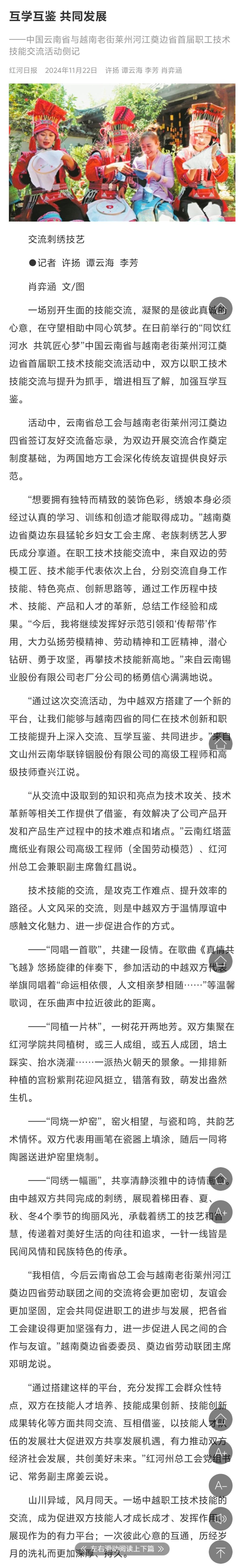 红河日报:中国云南省与越南老街莱州河江奠边省首届职工技术技能交流活动侧记