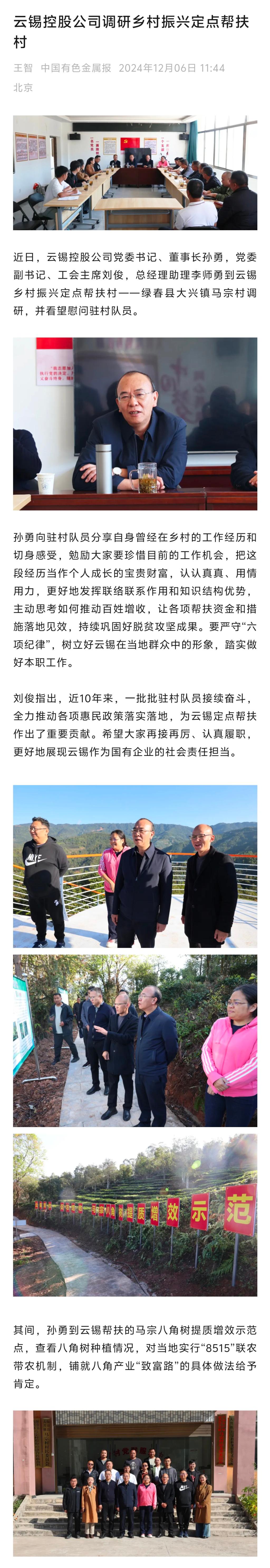 中国有色金属报:云锡控股公司调研乡村振兴定点帮扶村