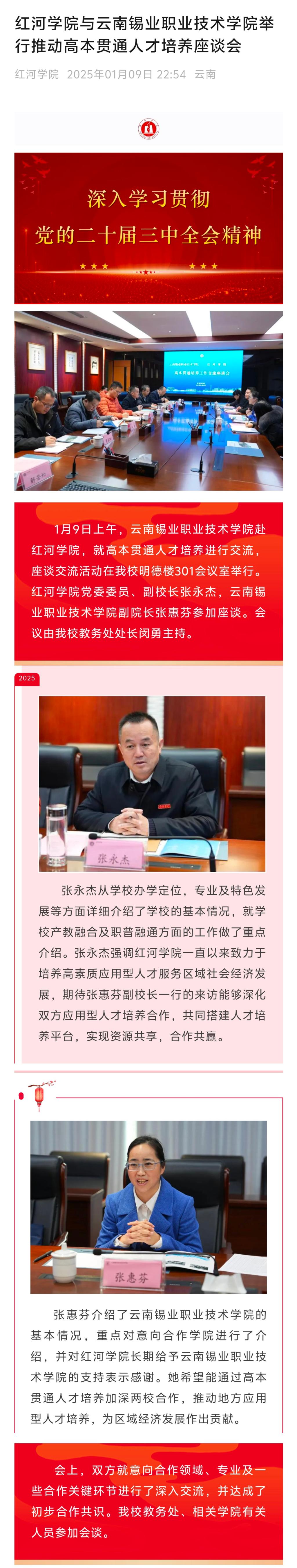 红河学院:红河学院与云南锡业职业技术学院举行推动高本贯通人才培养座谈会