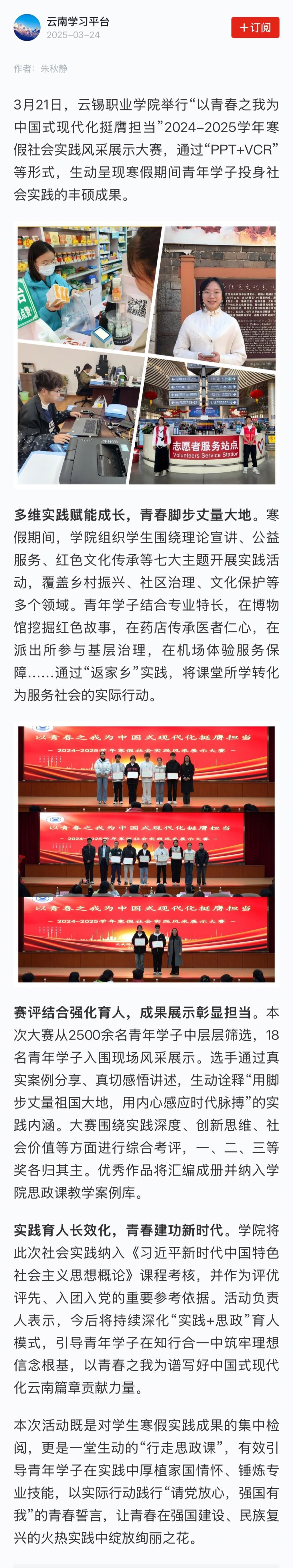 学习强国:云锡职业学院以青春之我为中国式现代化挺膺担当