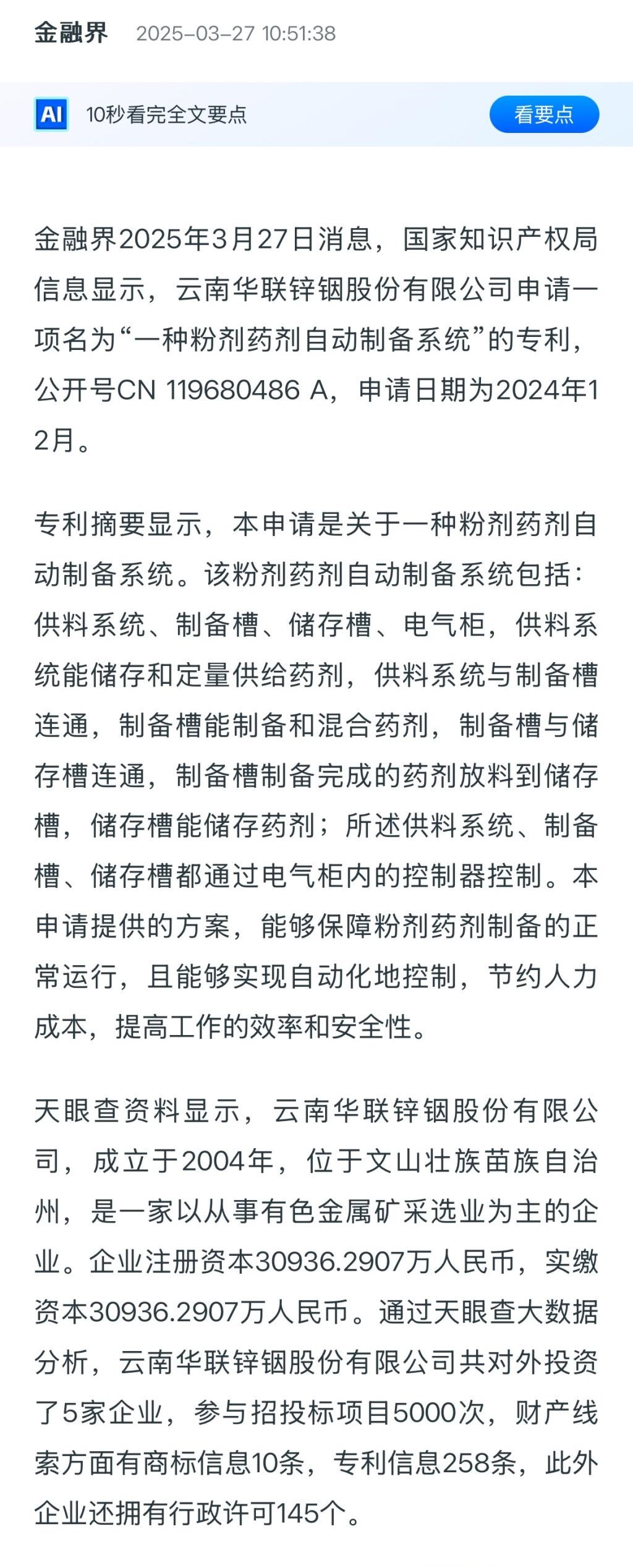金融界:云南华联锌铟申请一种粉剂药剂自动制备系统专利,实现自动化控制节约人力成本