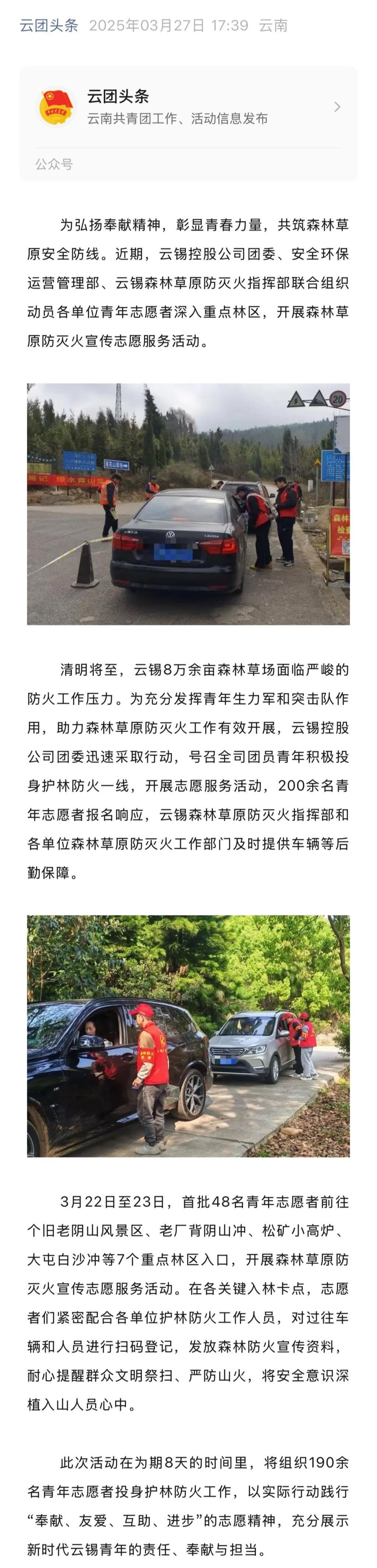 云团头条:云锡青年积极投身森林草原防灭火宣传志愿服务活动