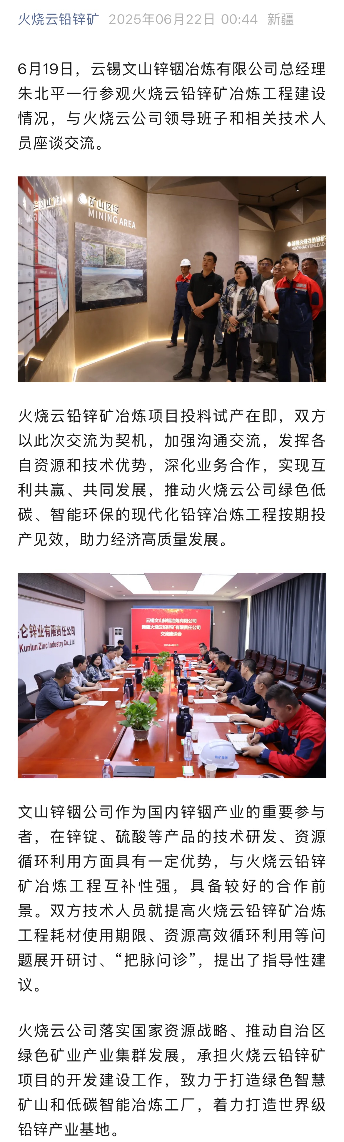 火烧云铅锌矿:火烧云公司和云锡文山锌铟公司座谈交流