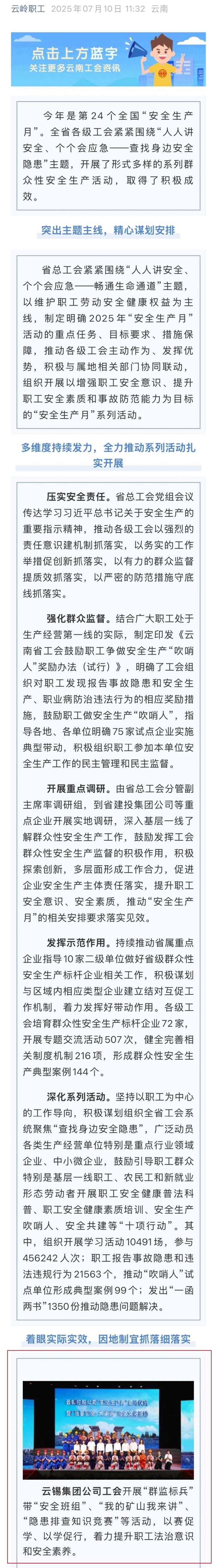 云岭职工:全省工会系统“安全生产月”活动深入开展