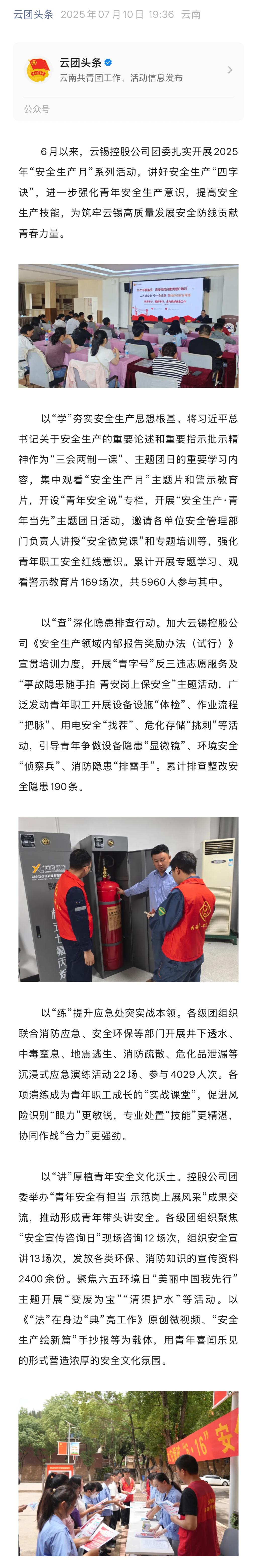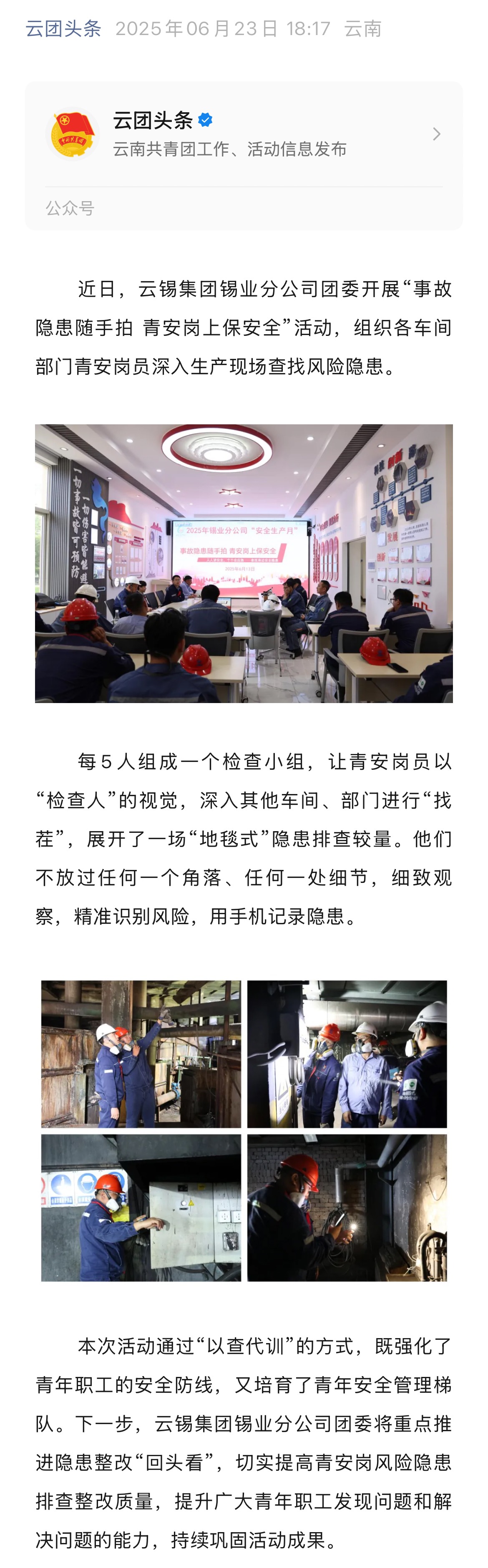 云团头条:云锡各单位团委开展“安全生产月”、志愿服务活动