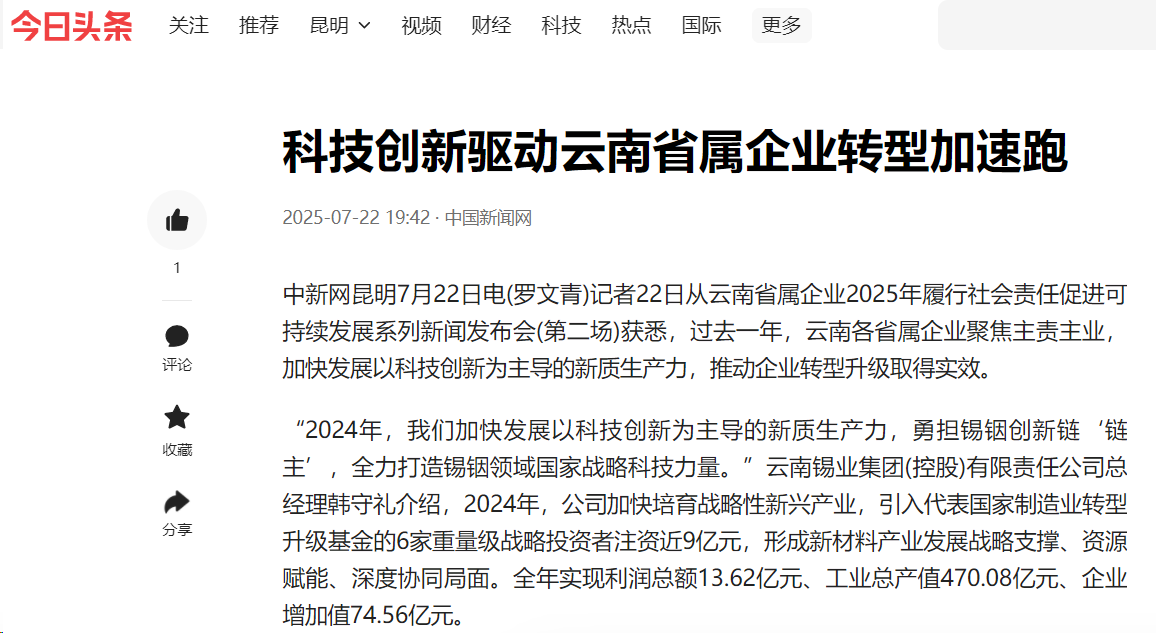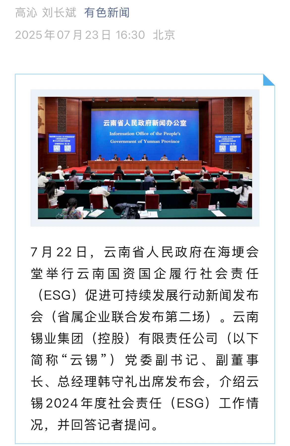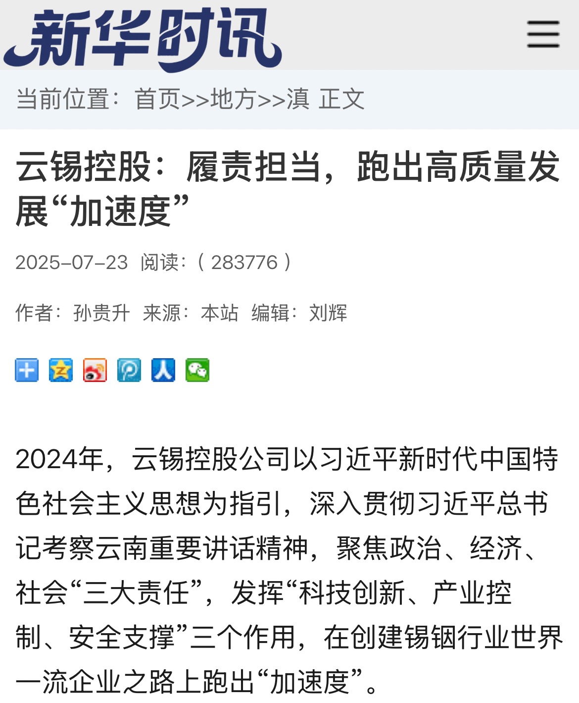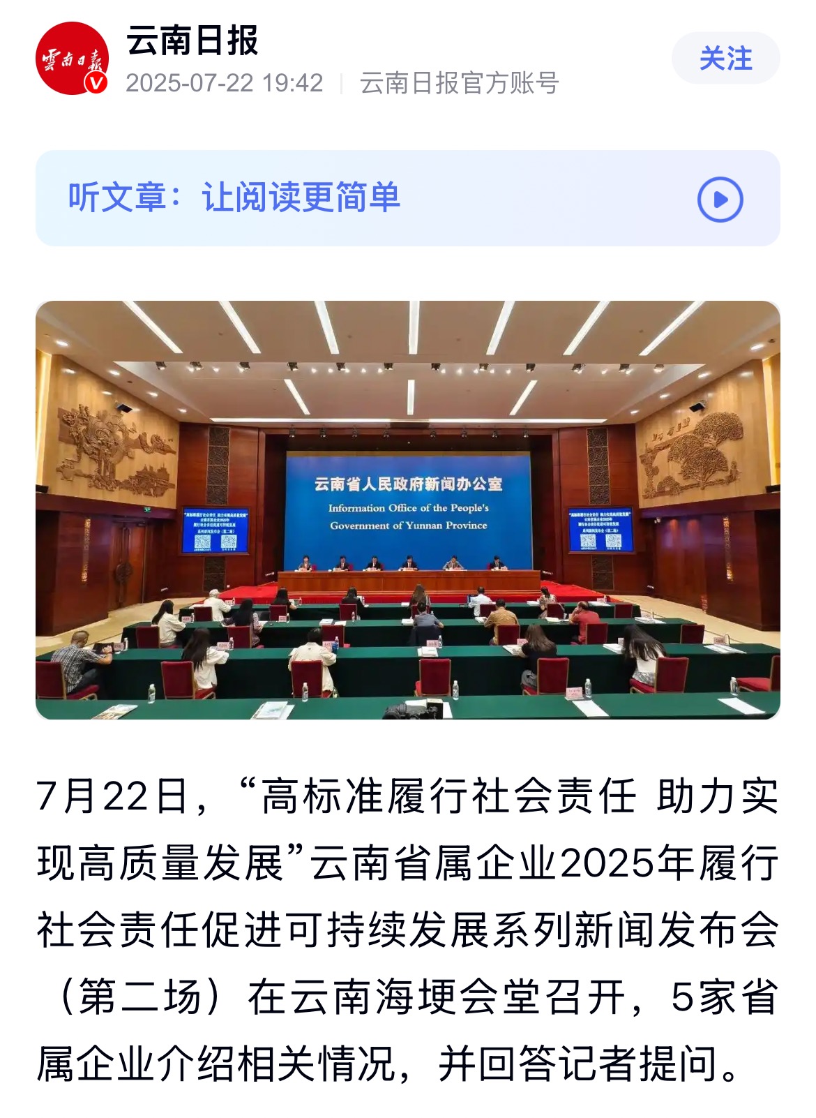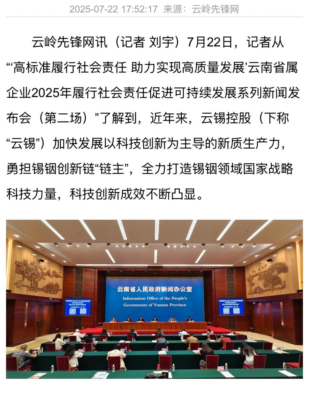 来源:央广网、央视影音、新华网、新华时讯、中国日报网、中国新闻网、中国网云南新闻联播、云南卫视晚间新闻、云南发布、云南日报、云南日报-云新闻、云南网、七彩云端、云南省人民政府、云岭先锋网、云南国资、云南政协报、有色金属报、有色新闻、腾讯新闻、今日头条、搜狐、网易、新浪微博、新浪财经、都市时报、国泰君安、昆明日报、春城晚报、昆明信息港、开屏新闻