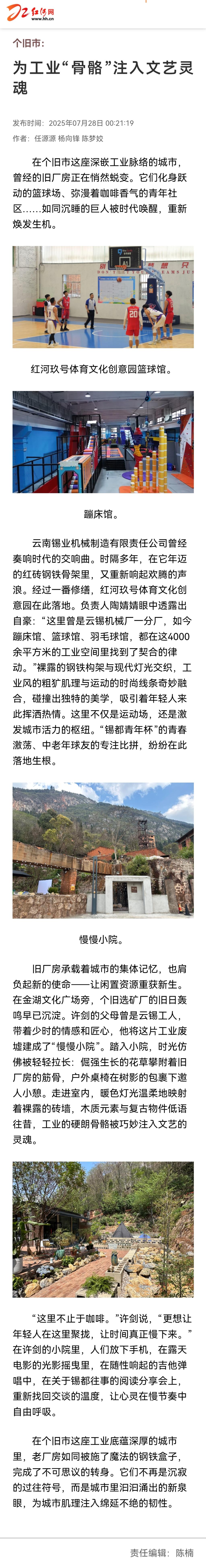 红河网:个旧市为工业“骨骼”注入文艺灵魂