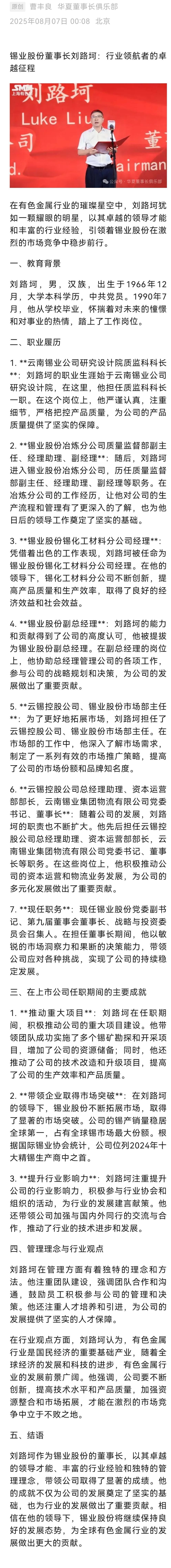 华夏董事长俱乐部:锡业股份董事长刘路坷——行业领航者的卓越征程