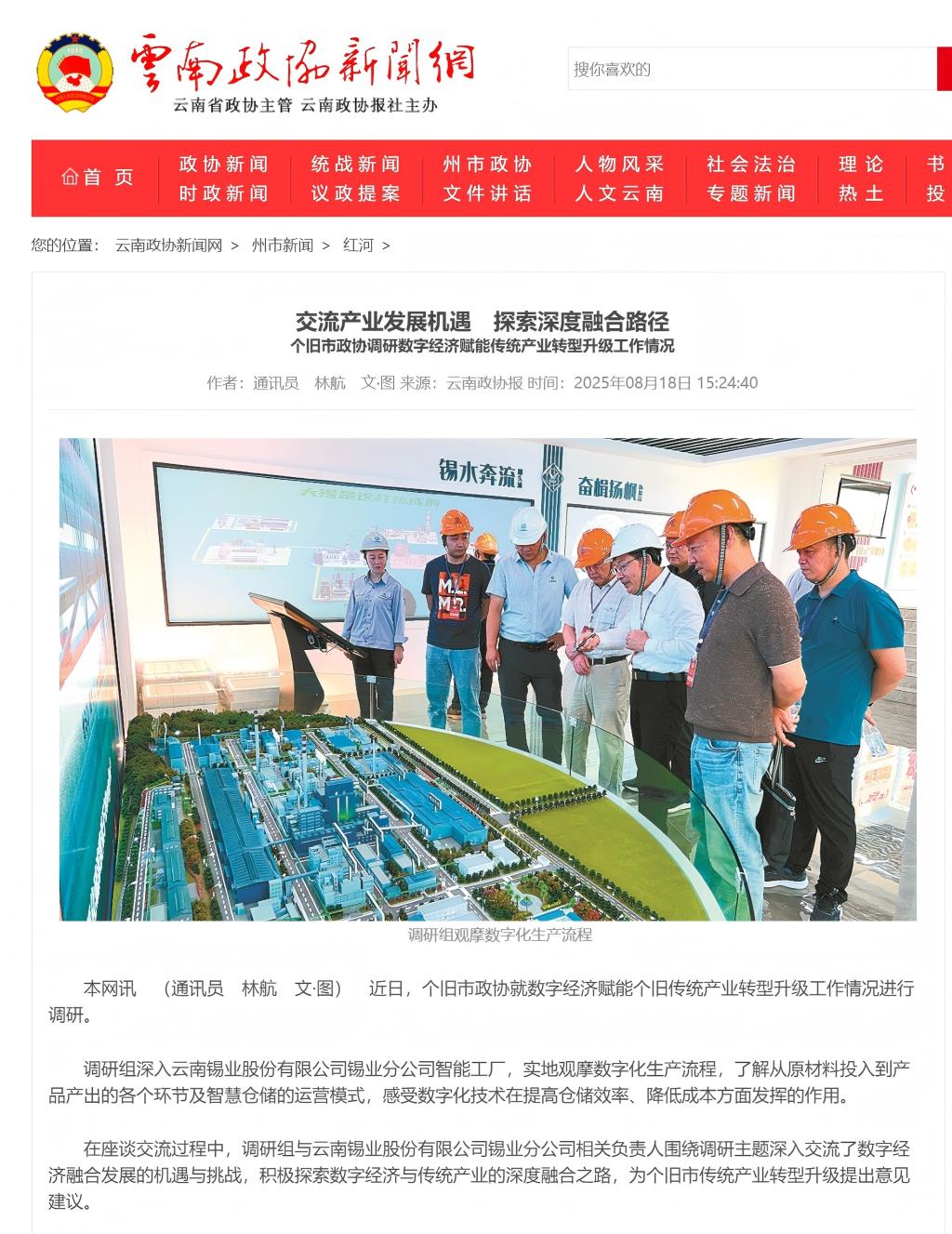 云南政协新闻网:交流产业发展机遇 探索深度融合路径——个旧市政协调研数字经济赋能传统产业转型升级工作情况