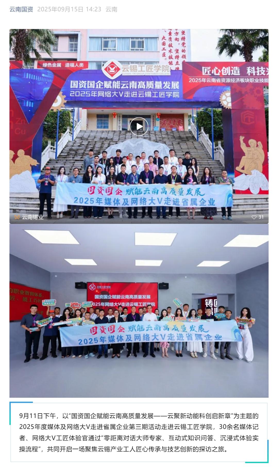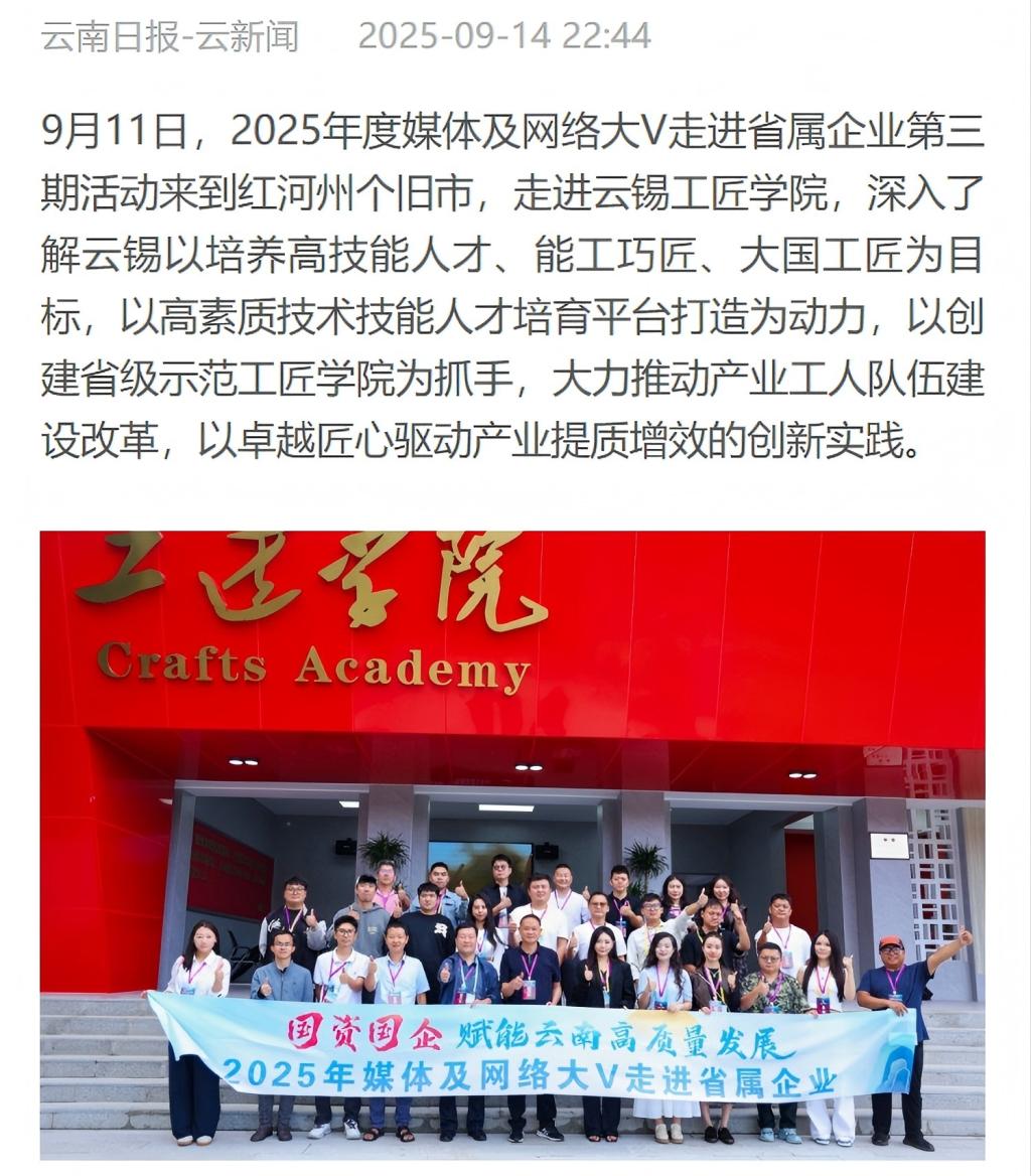 (云锡工匠体验官走进省属企业 来源:诗歌文旅)