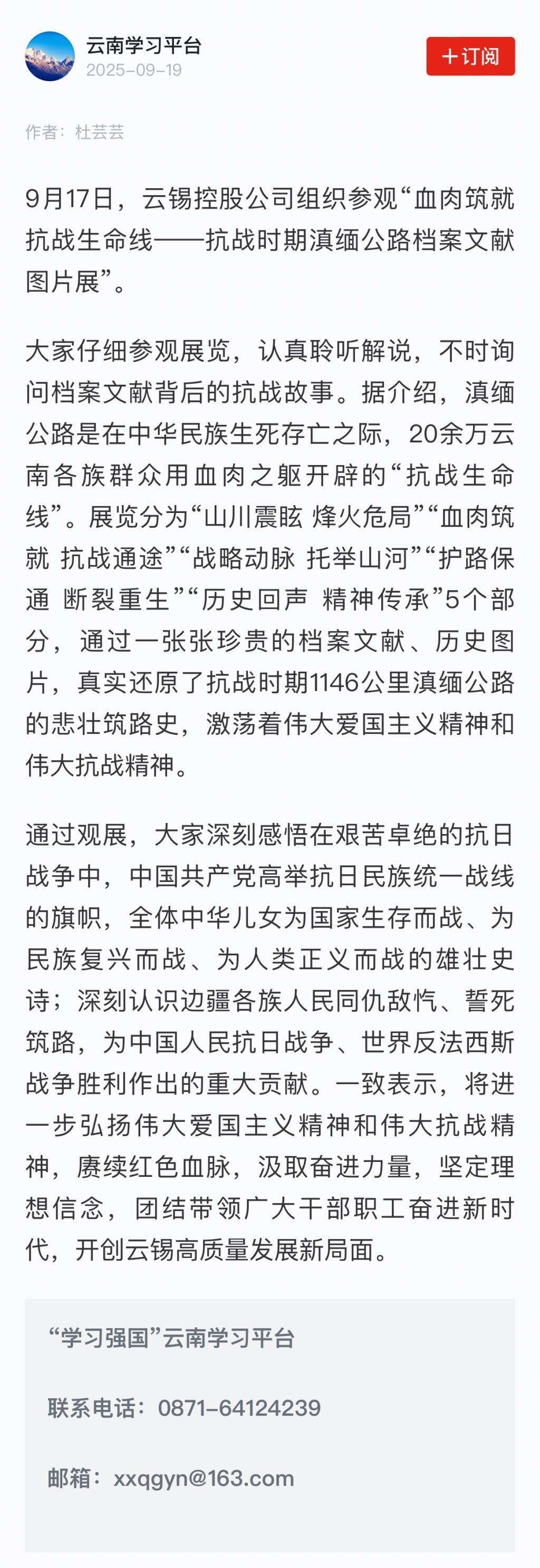 学习强国:云锡组织参观“血肉筑就抗战生命线——抗战时期滇缅公路档案文献图片展”