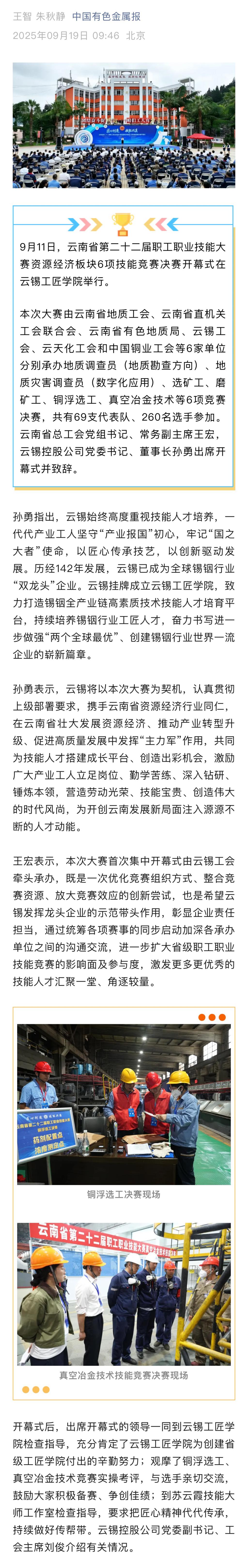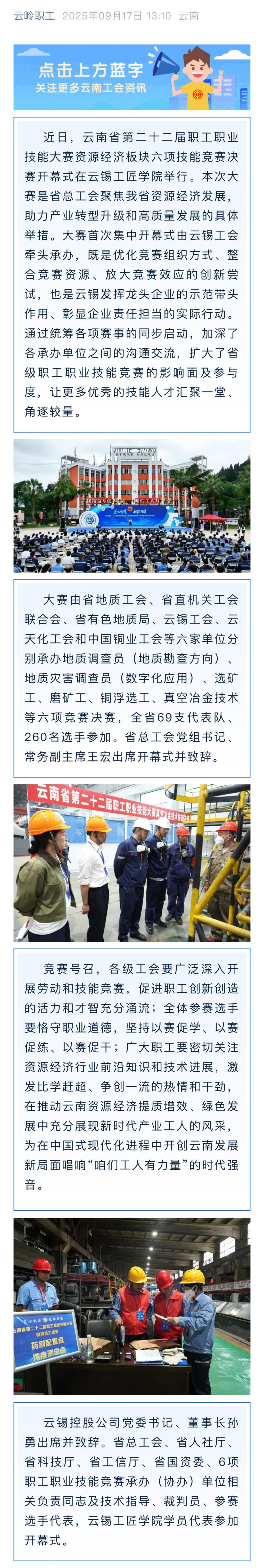 云岭职工、中国有色金属报:省二十二届职工职业技能大赛资源经济板块六项技能竞赛决赛集中开幕