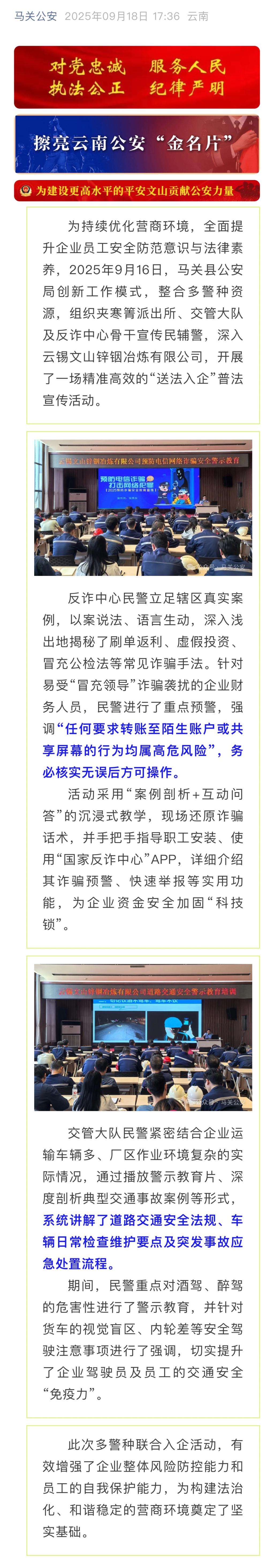 马关公安:多警联动入企送法 筑牢防线护航发展