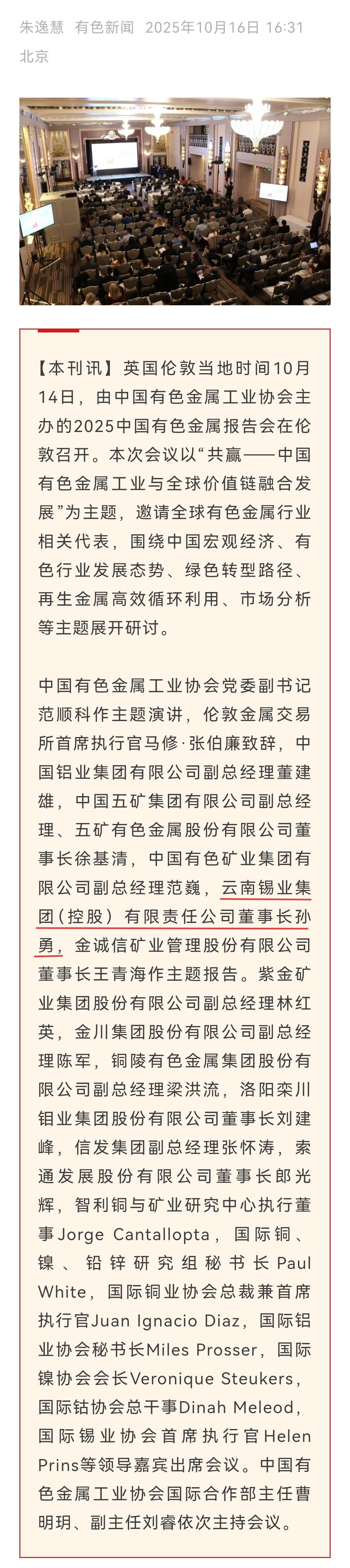 中国有色金属报、有色新闻:在世界舞台 听中国声音 2025中国有色金属报告会在伦敦召开