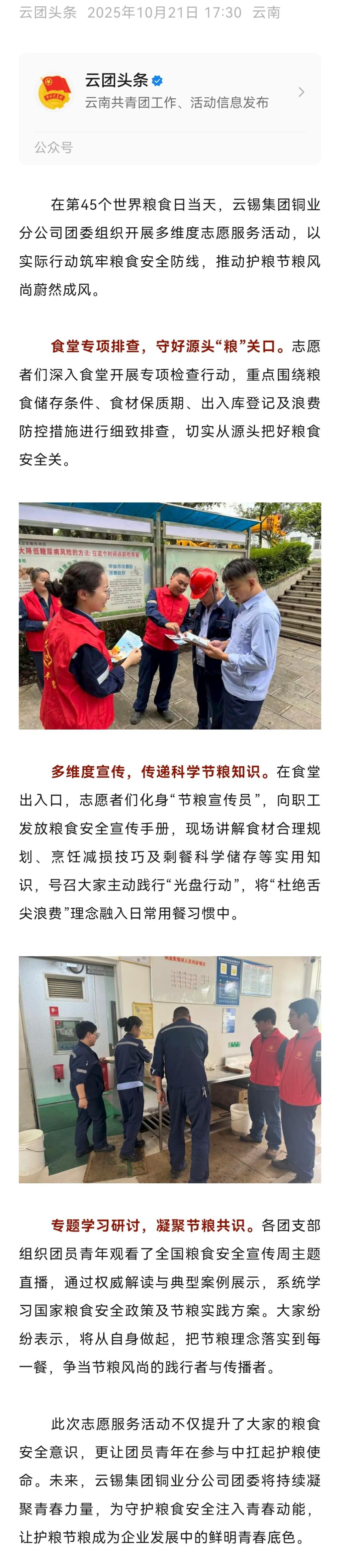 云团头条:云锡集团铜业分公司团委开展粮食安全宣传志愿服务活动