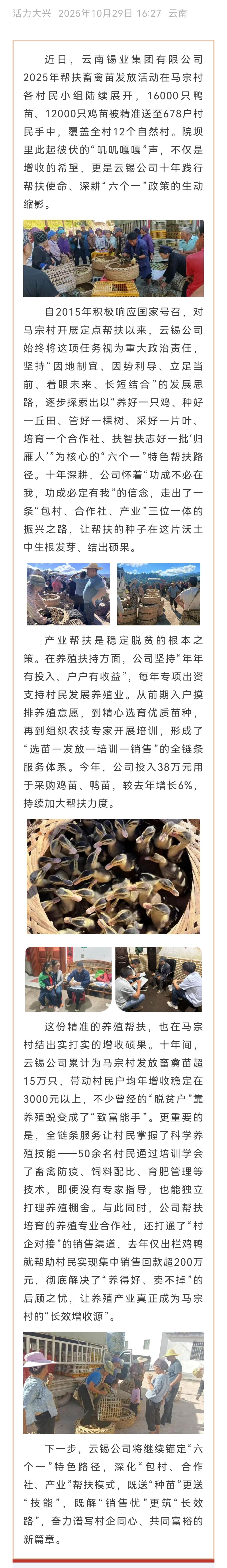 活力大兴:十年帮扶践初心!云锡公司“六个一”点亮马宗村增收路